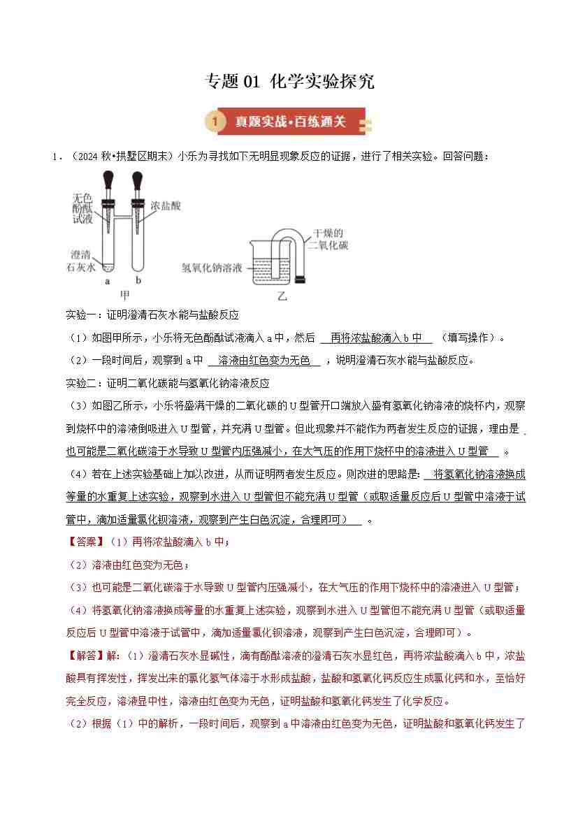 专题01 化学物质与反应(期末复习讲义)(原卷版)