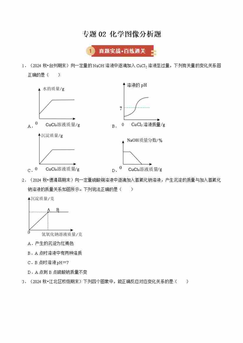 专题02 化学图像分析题(期末专项训练)(原卷版)