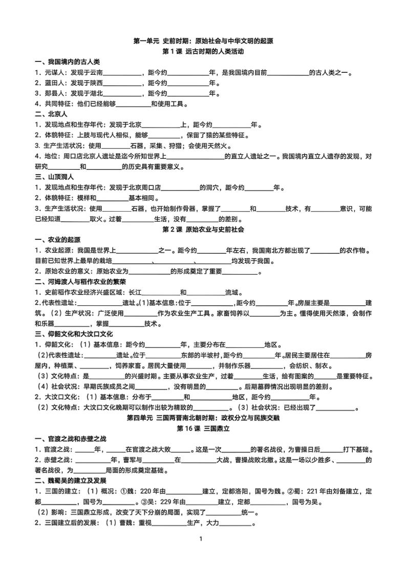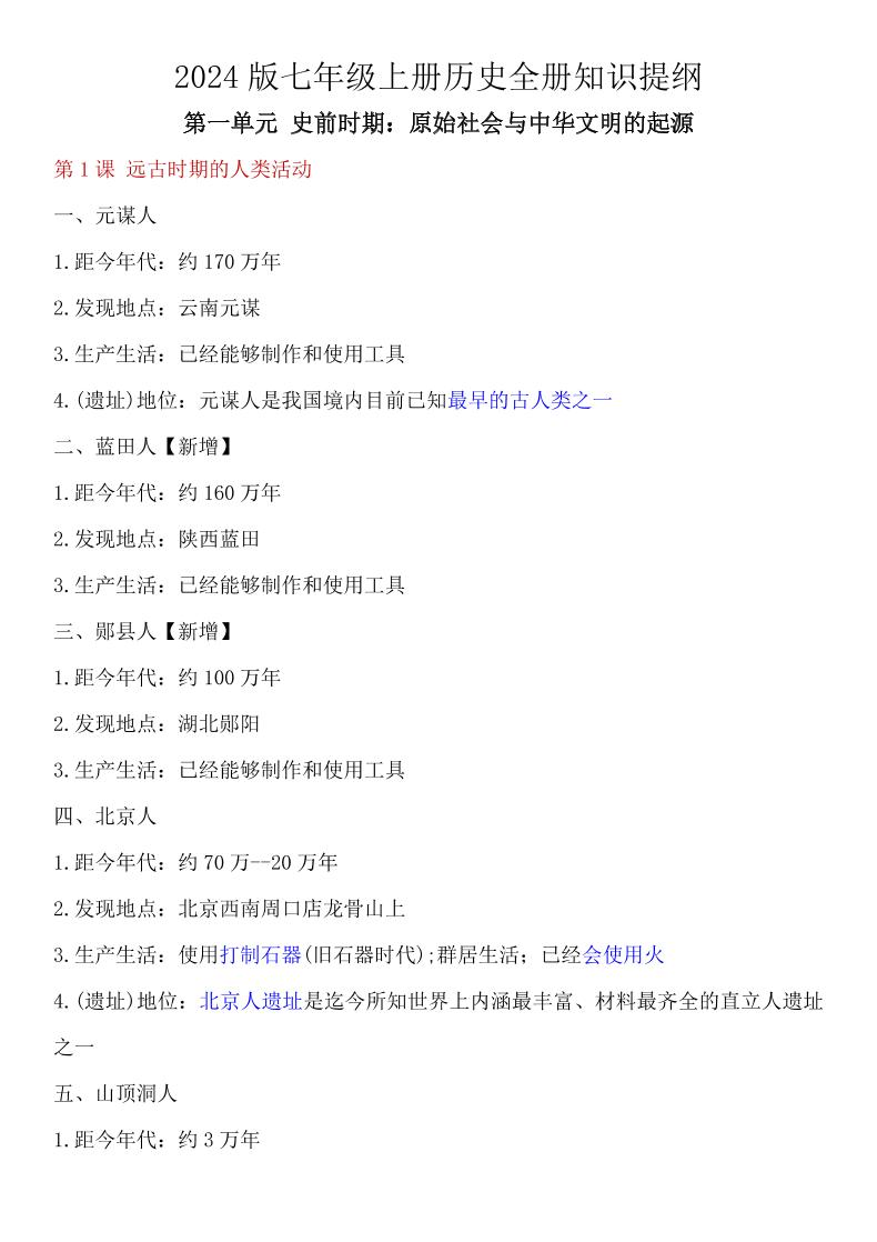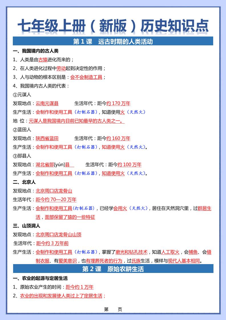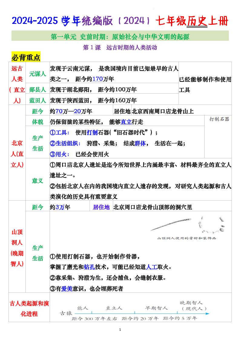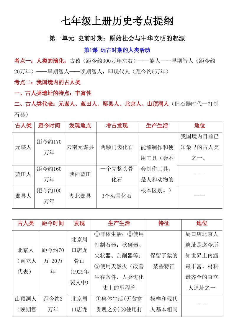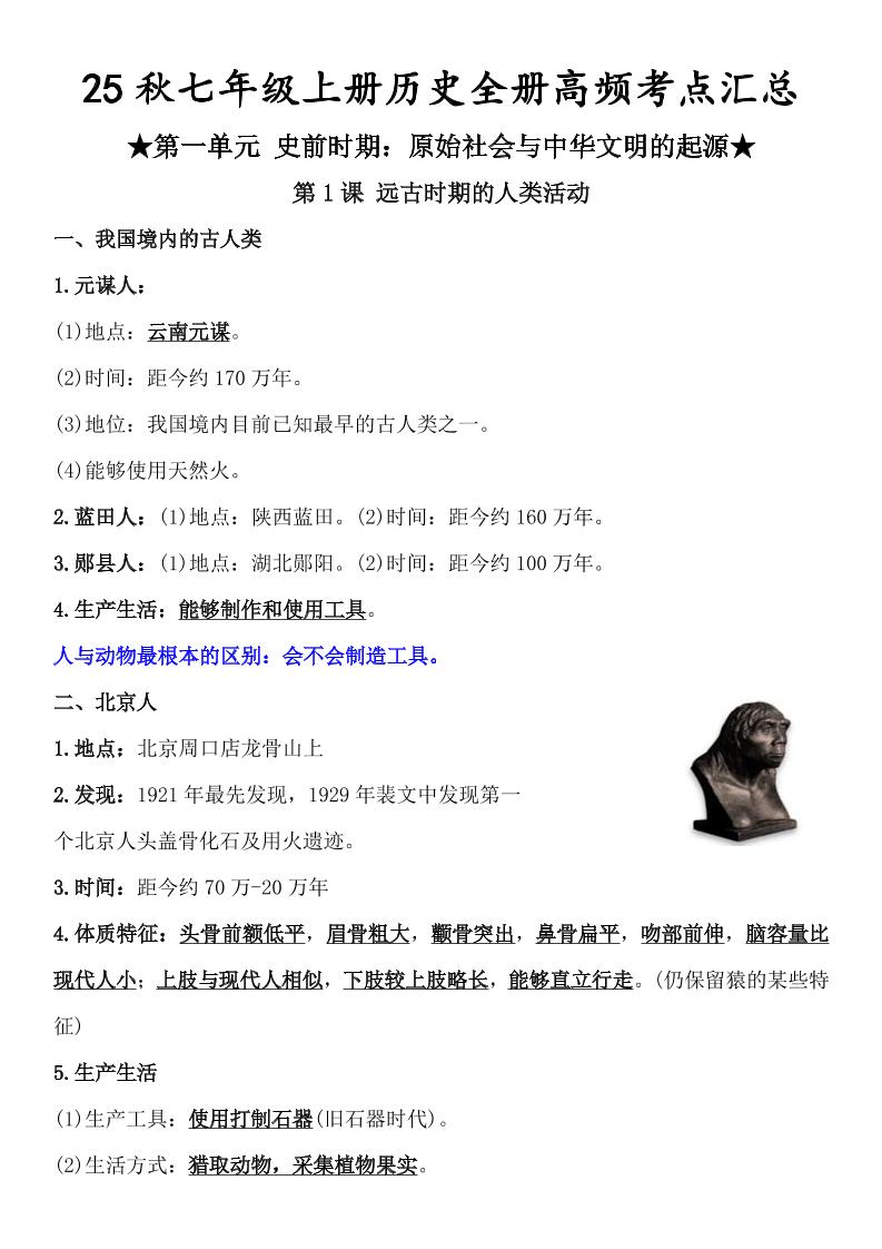 七年级上册历史-全册·【重点知识考点】(完整版)