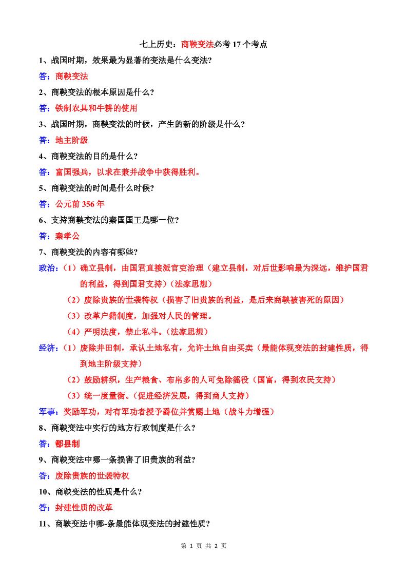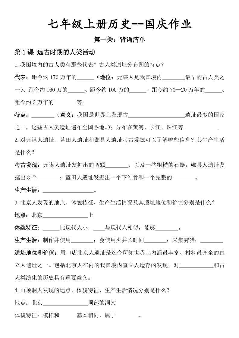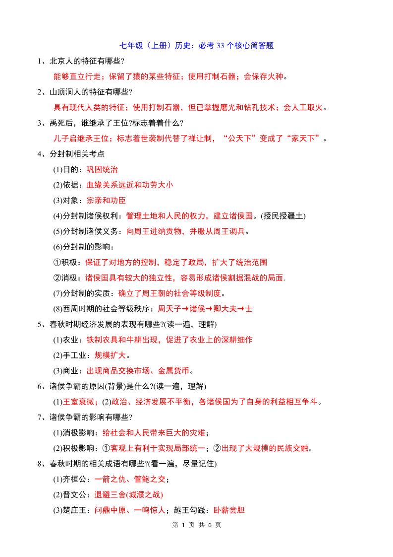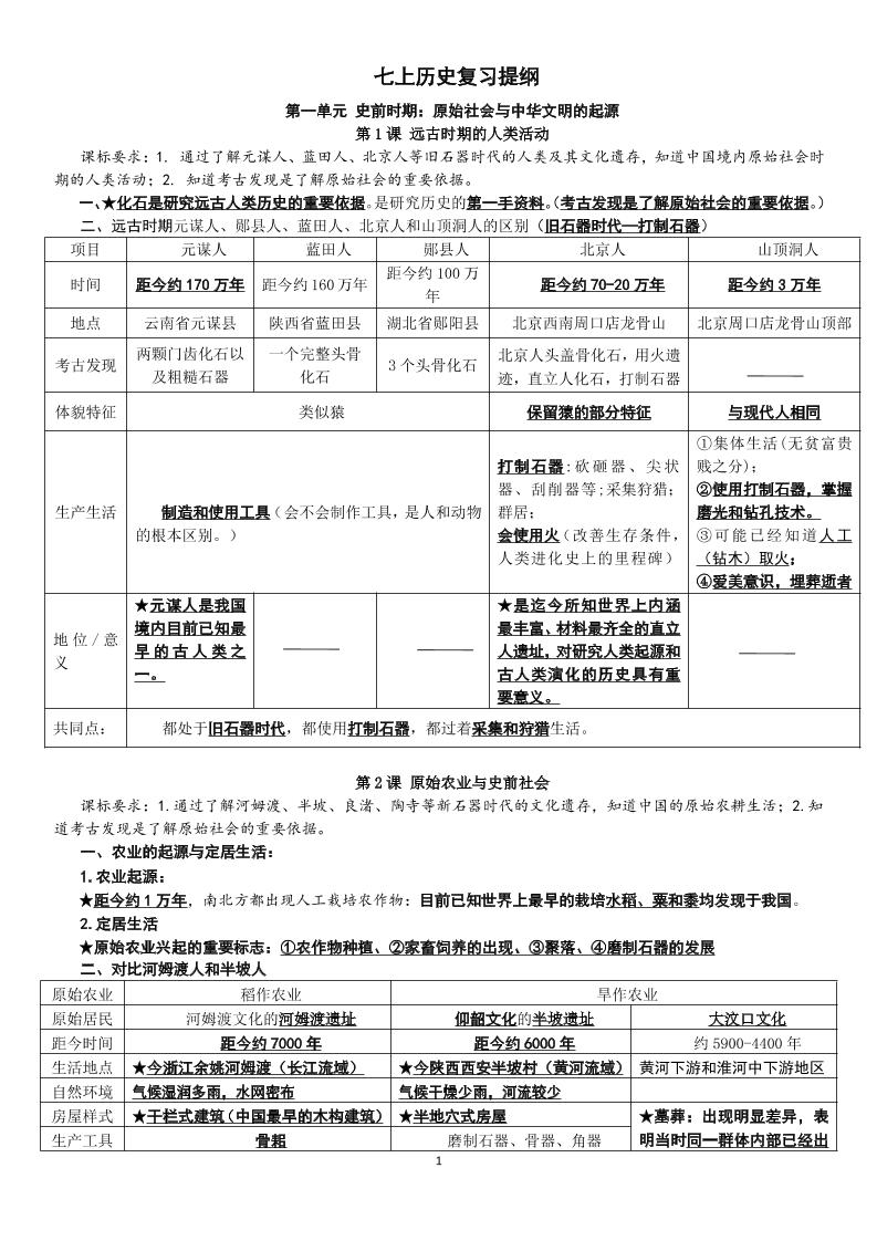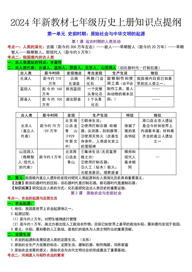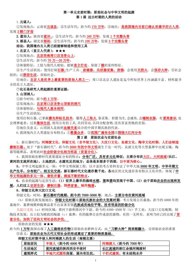 七年级上册历史-全册·【重点知识考点】(完整版)