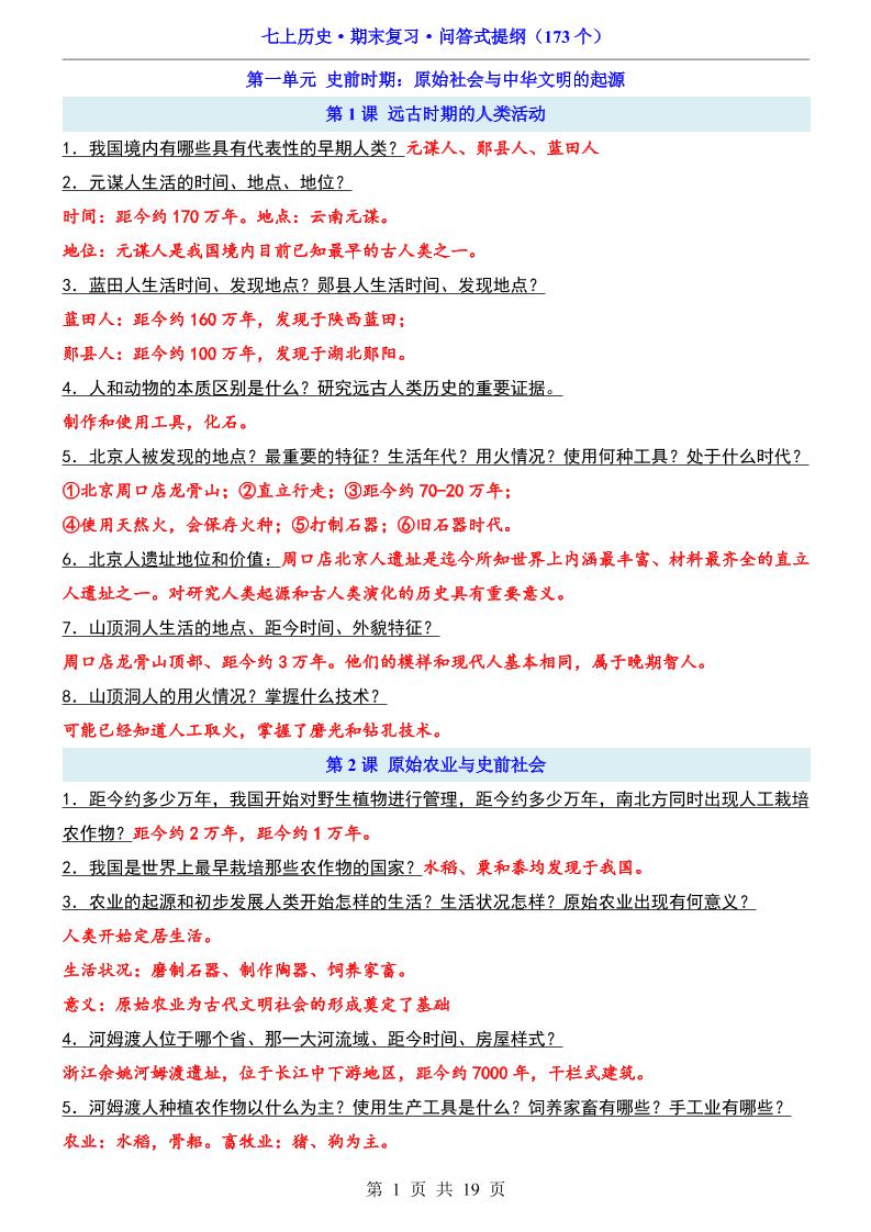 七上历史期末复习问答式提纲(173个)00