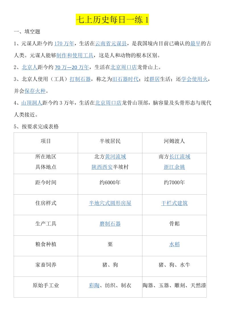 七上历史每日一练.(答案版)