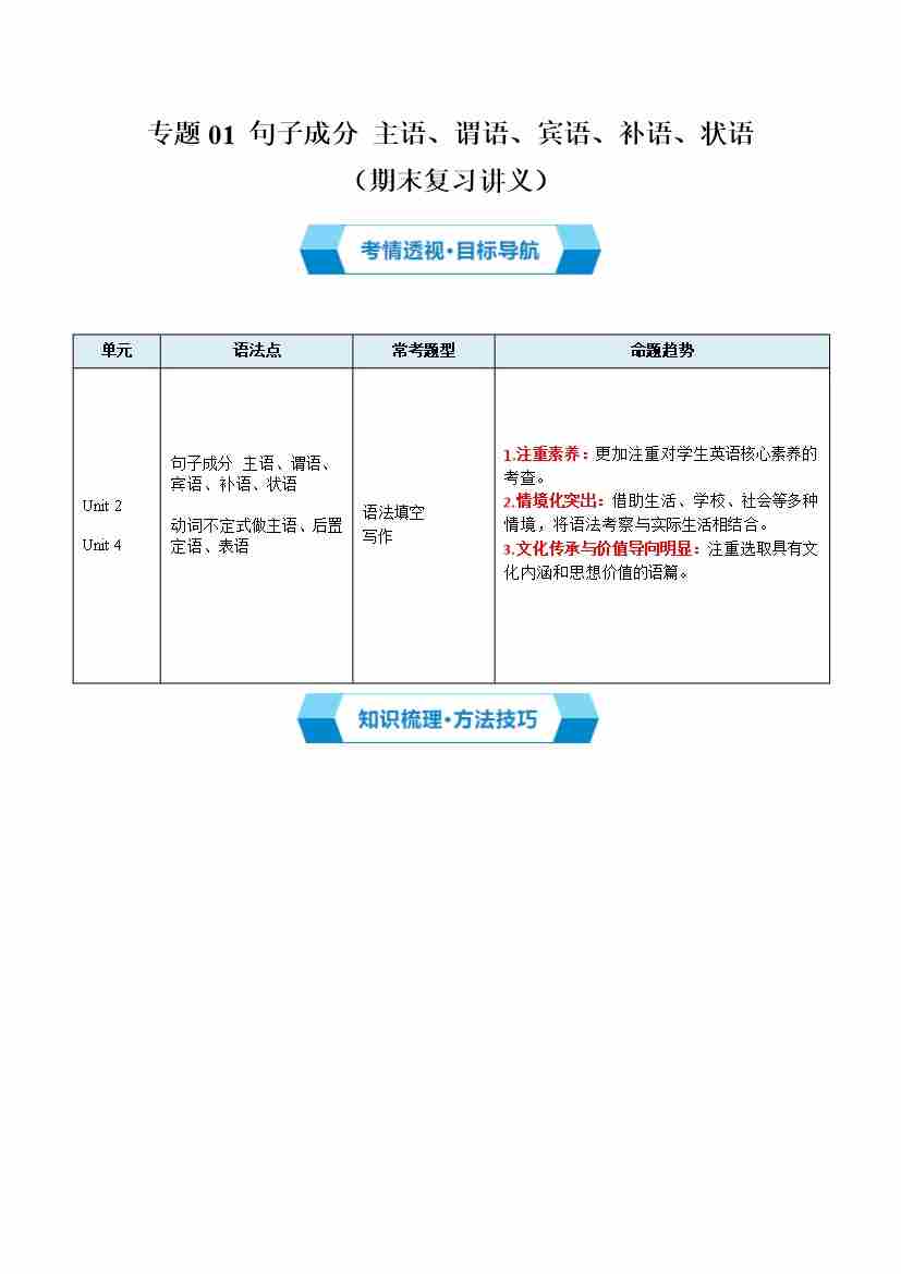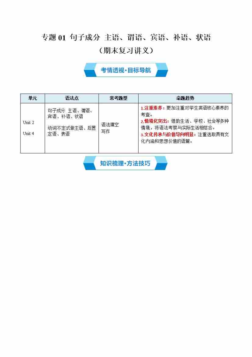 专题01 句子成分(期末复习讲义)(原卷版)