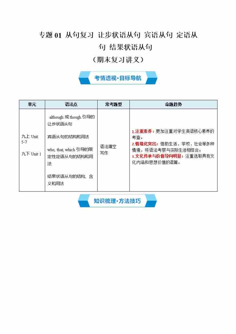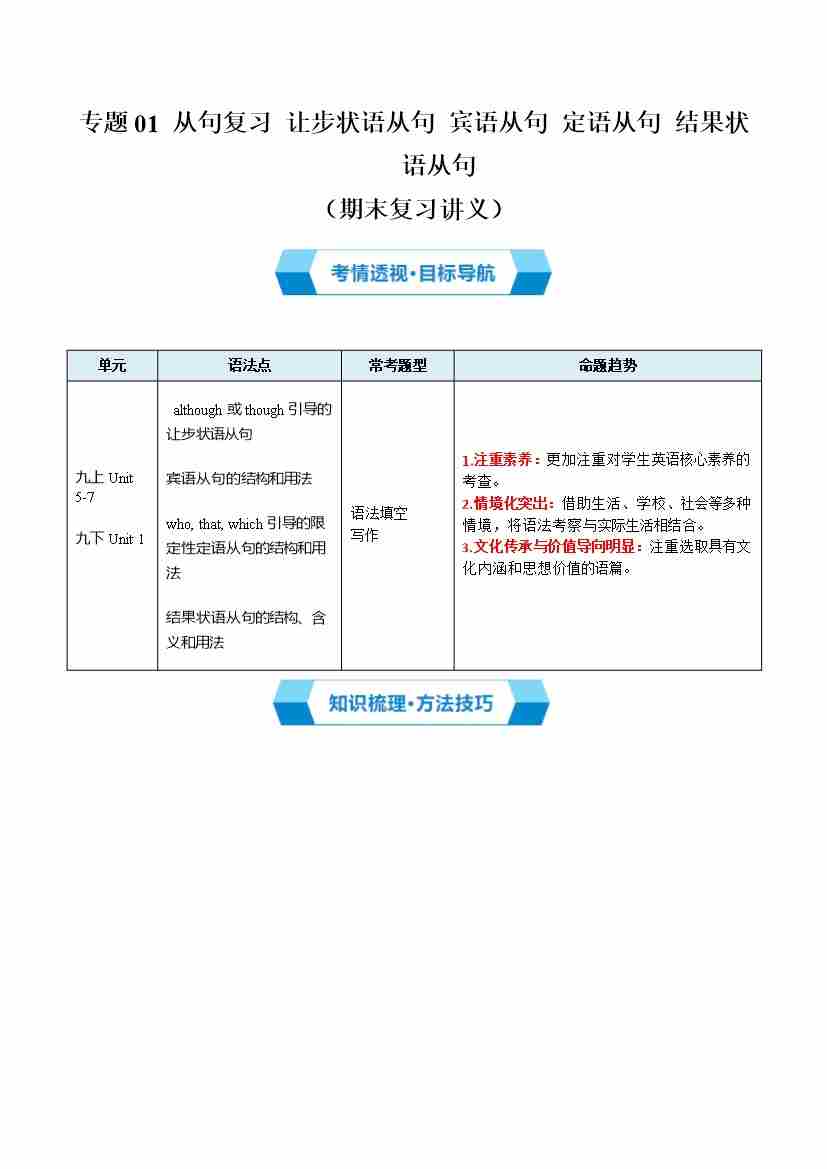 专题02 从句复习(期末复习讲义)(原卷版)