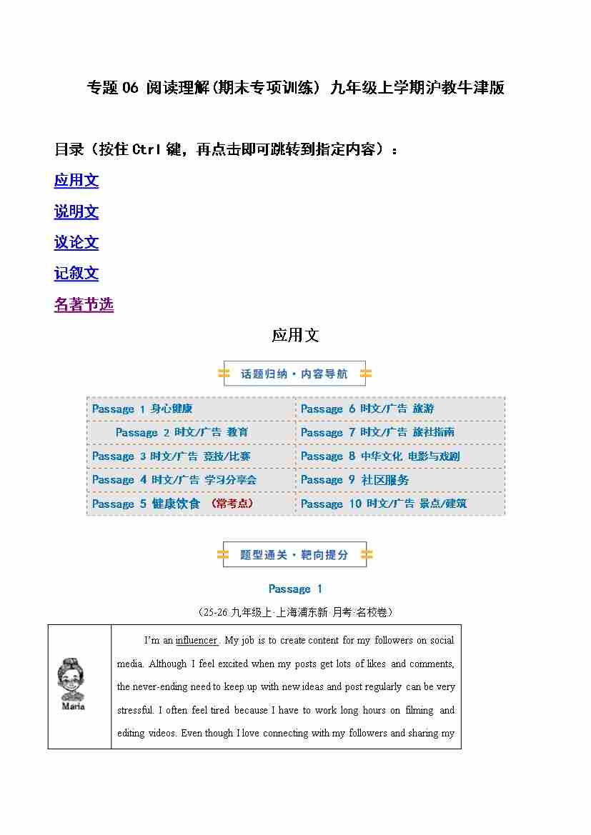 专题06 阅读理解(期末专项训练) (原卷)