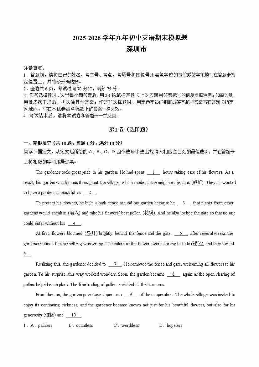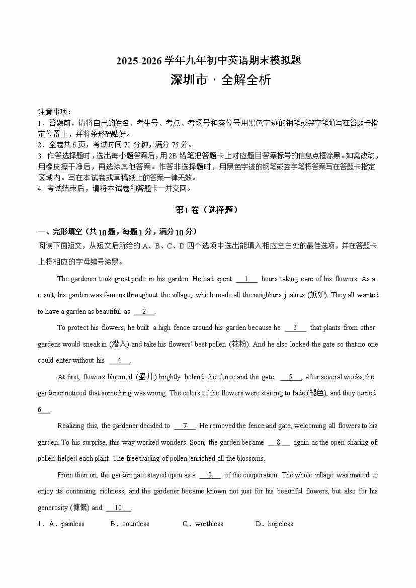 期末模拟必刷卷01(深圳专用)(牛津深圳版)