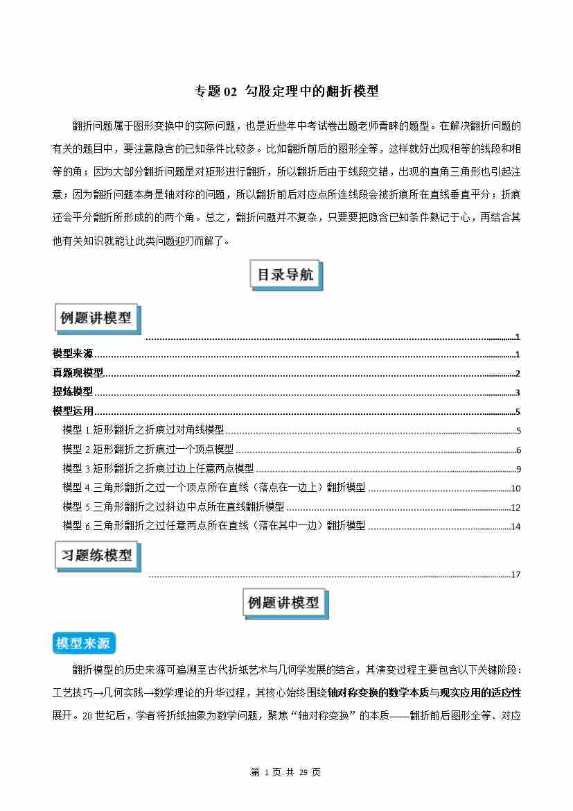 专题02 勾股定理中的翻折模型(几何模型讲义)北师版2024(原卷版)