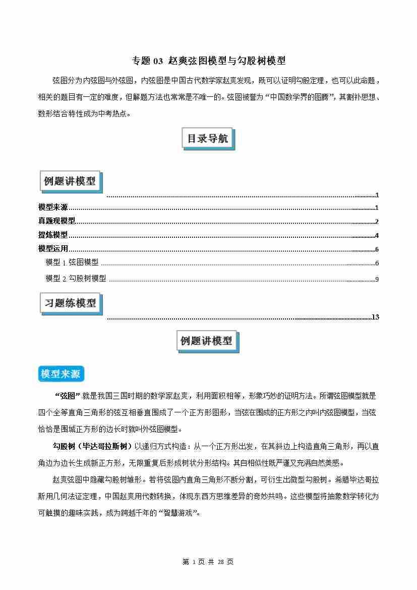 专题03 赵爽弦图模型与勾股树模型(几何模型讲义)北师版2024(解析版)