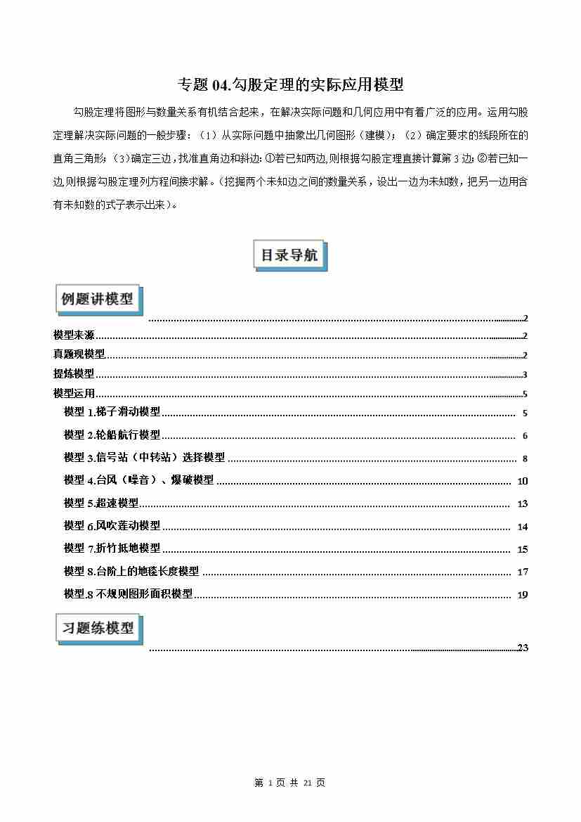 专题04 勾股定理实际应用模型(几何模型讲义)北师版2024(解析版)