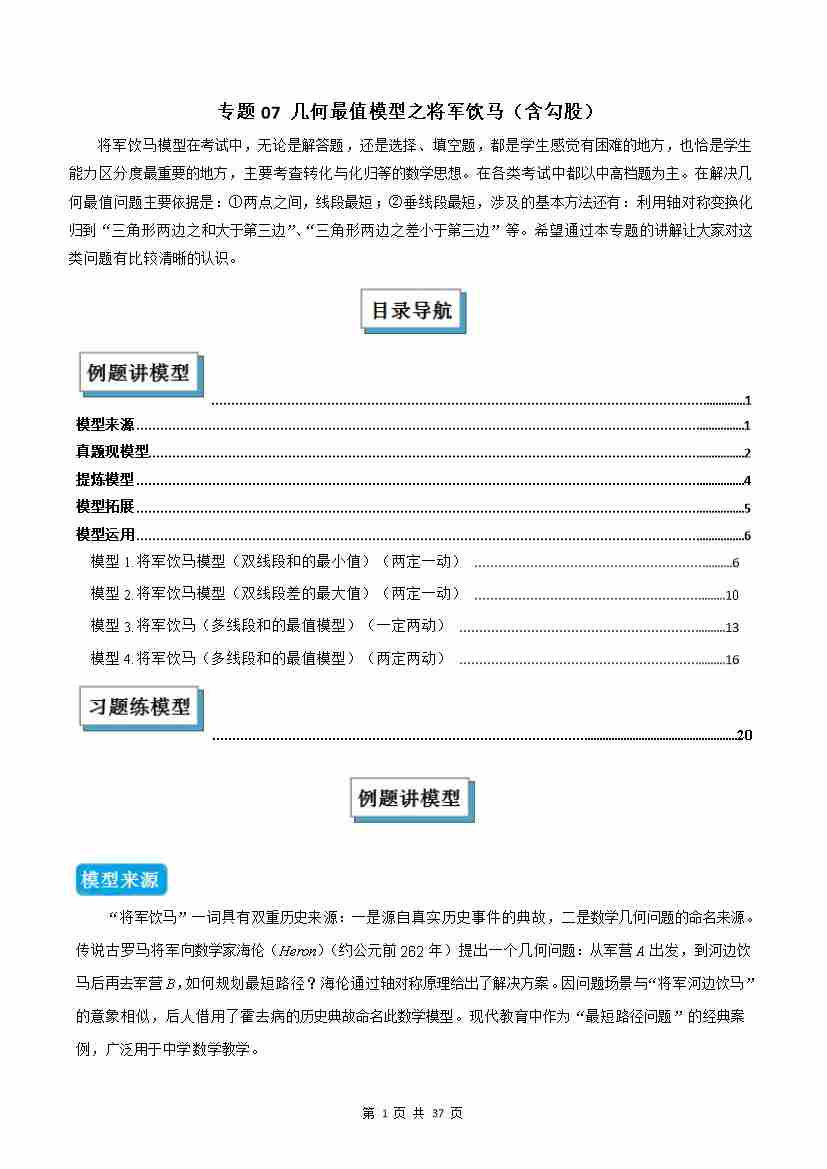专题07 几何最值模型之将军饮马(含勾股)(几何模型讲义)北师版2024(原卷版)