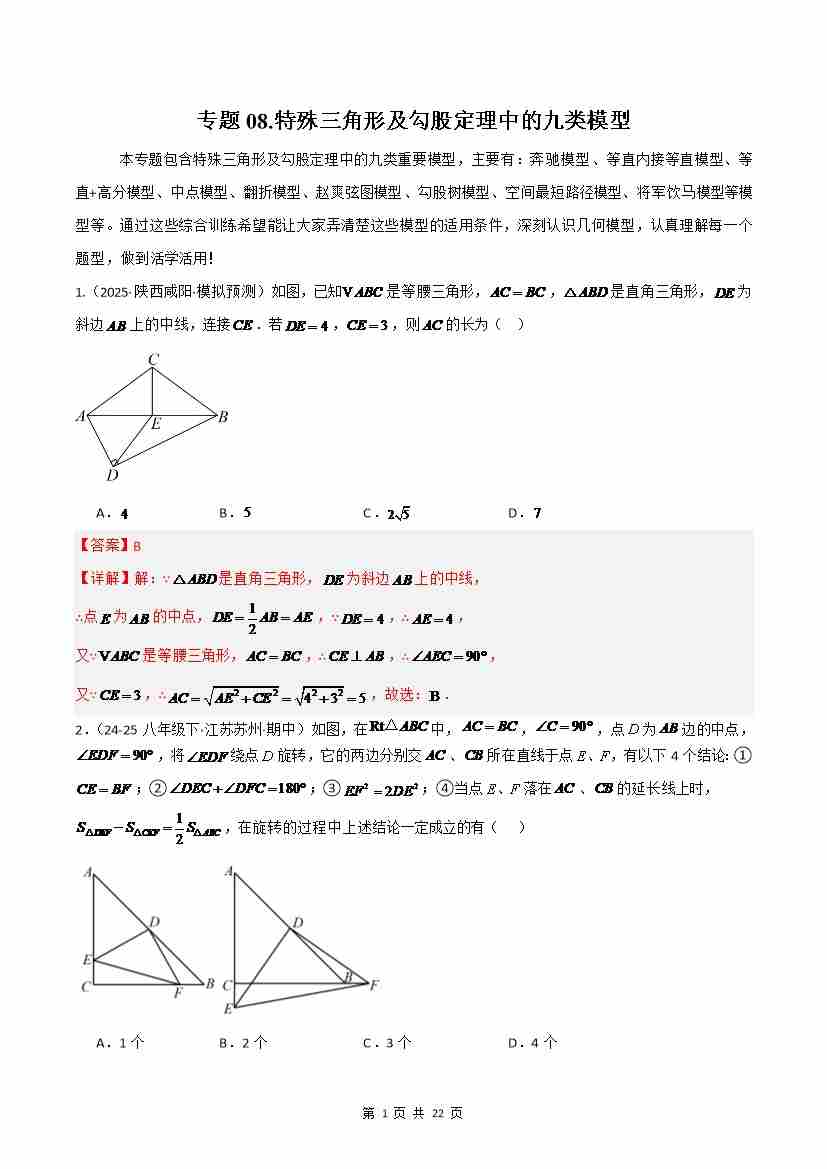 专题08 特殊三角形及勾股定理中的九类模型(几何模型讲义)北师版2024(解析版)
