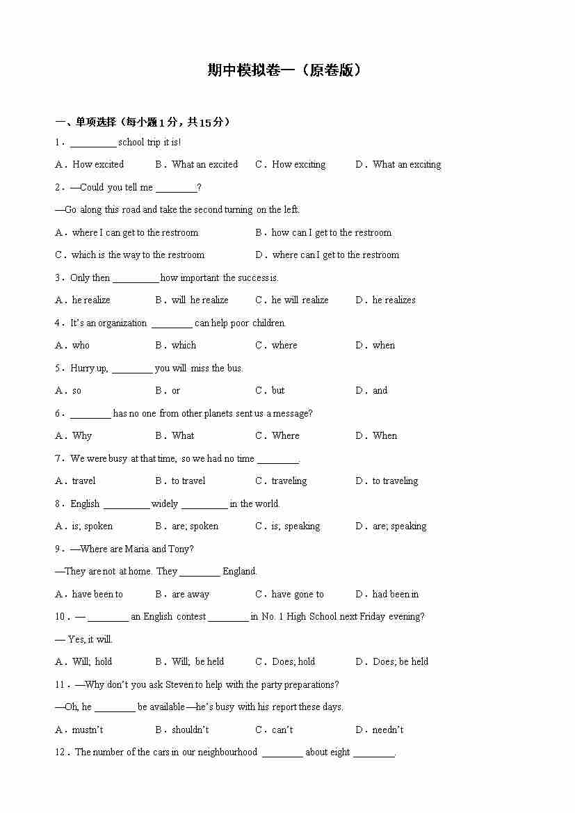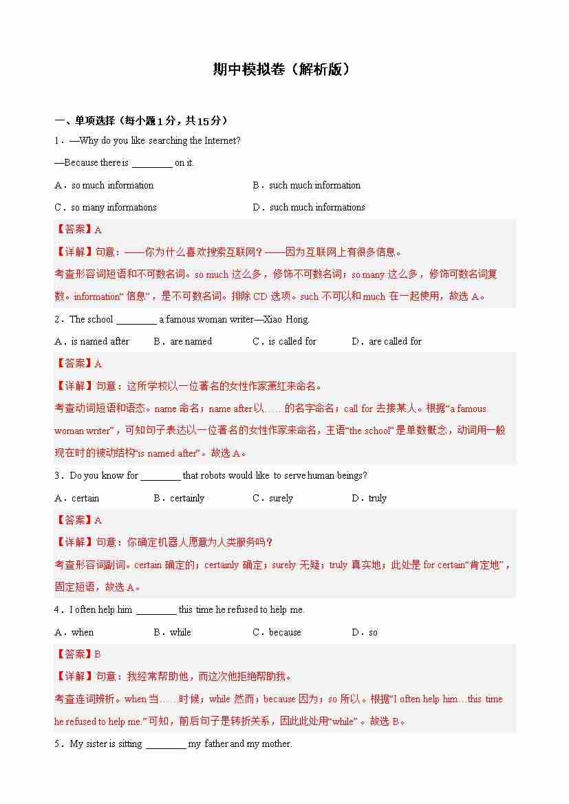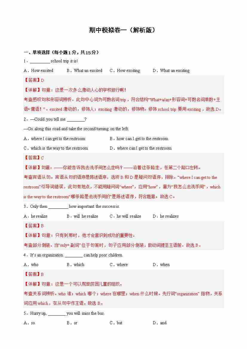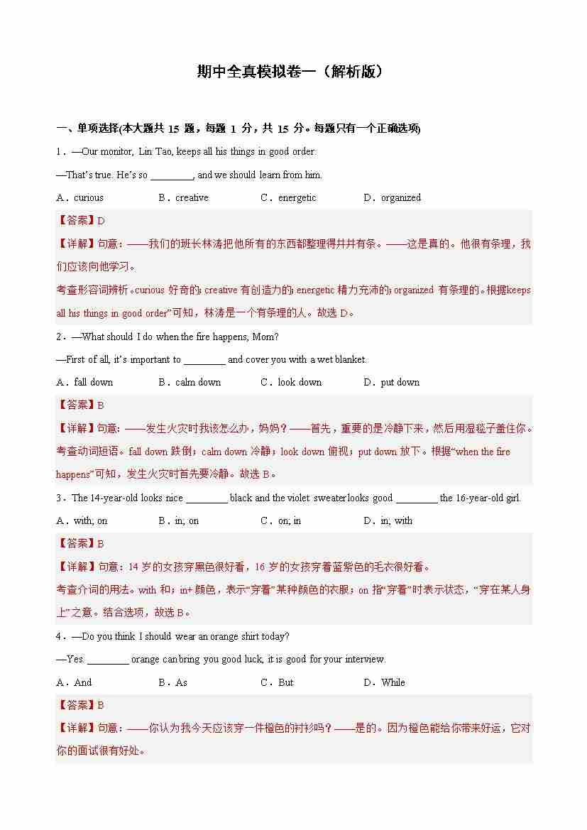 期中全真模拟卷一(解析版)-九年级上册(牛津上海版)