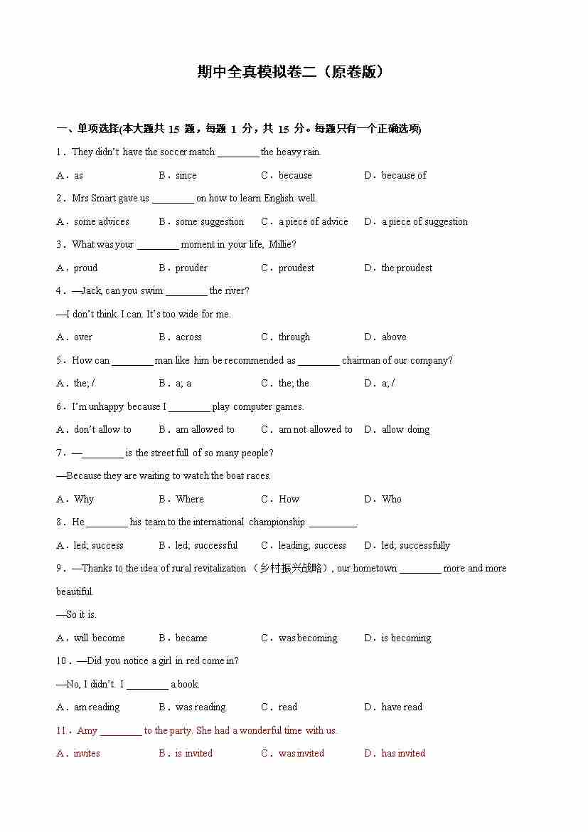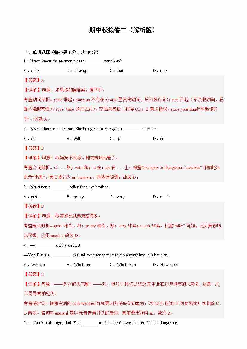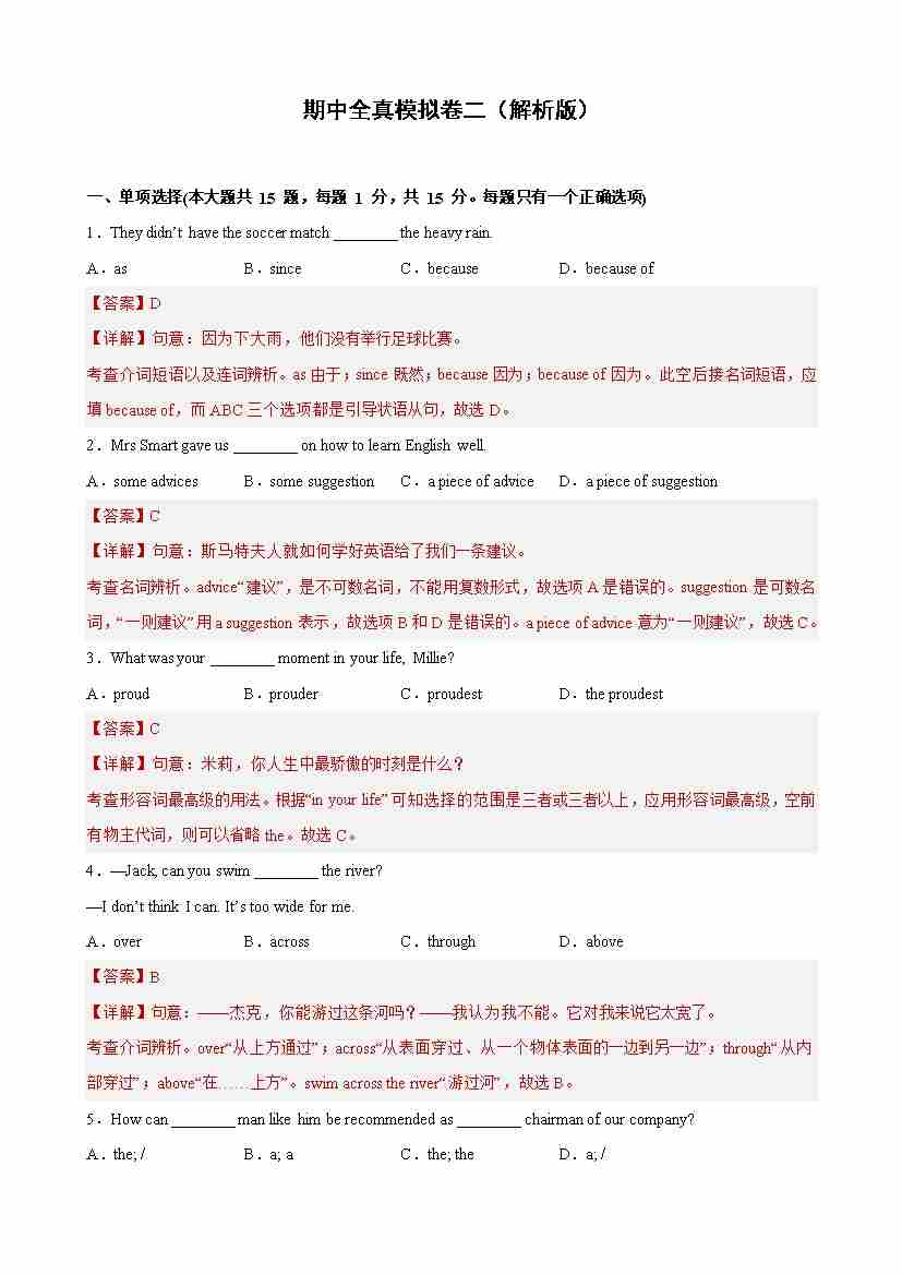 期中全真模拟卷二(解析版)-九年级上册(牛津上海版)