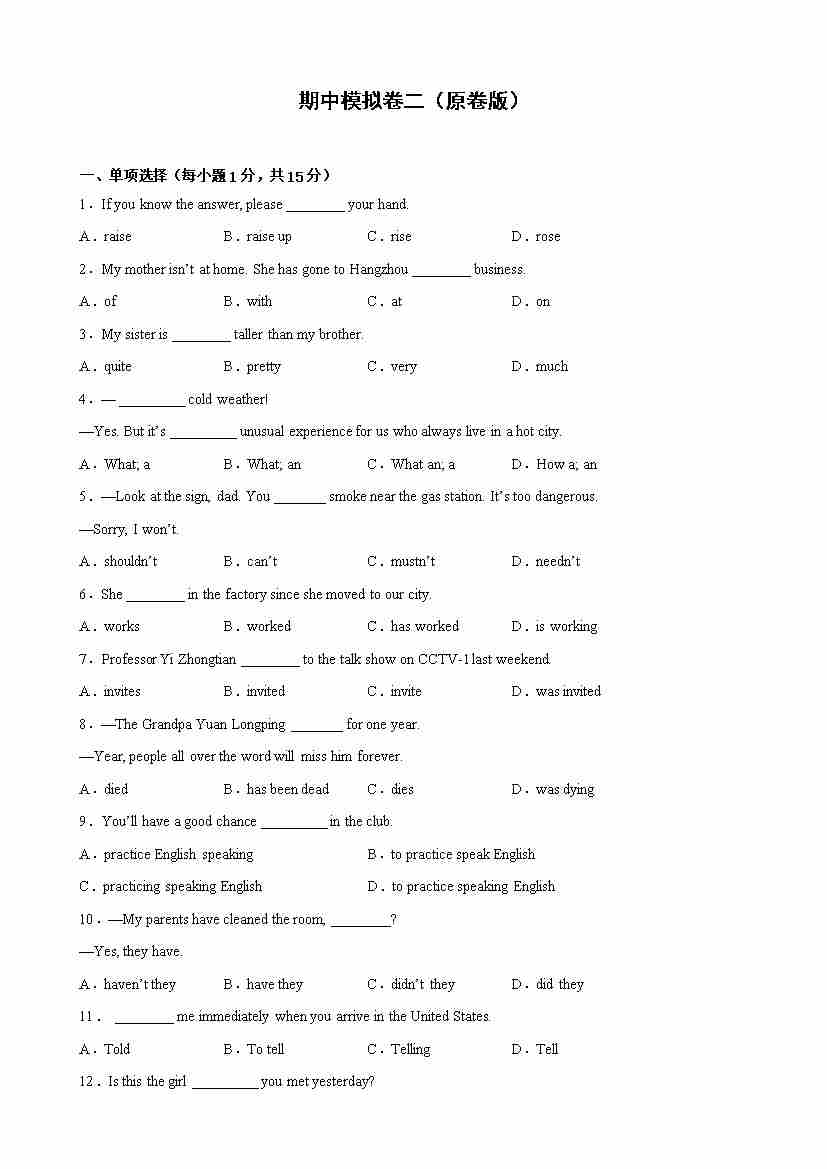 期中全真模拟卷二(原卷版)-九年级上册(牛津上海版)