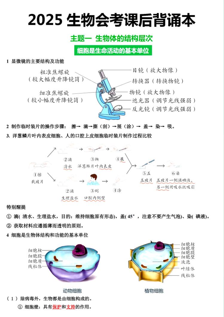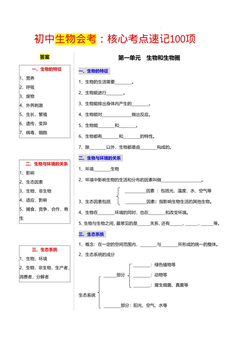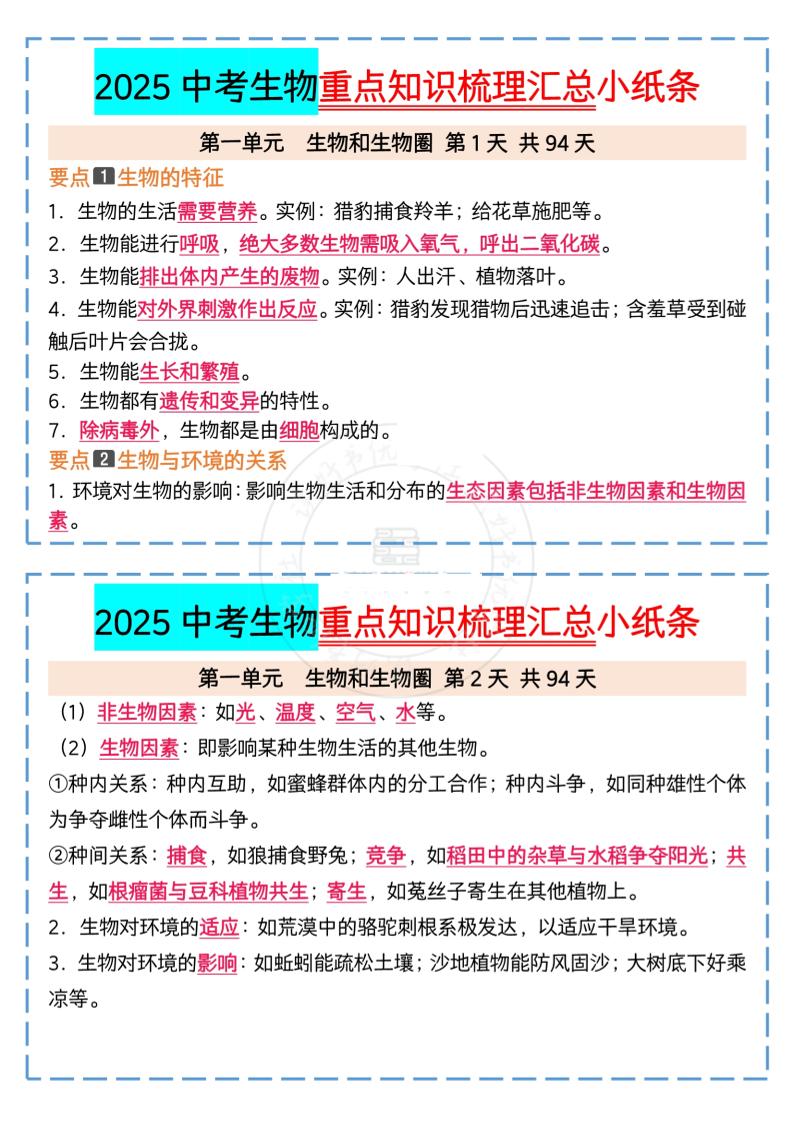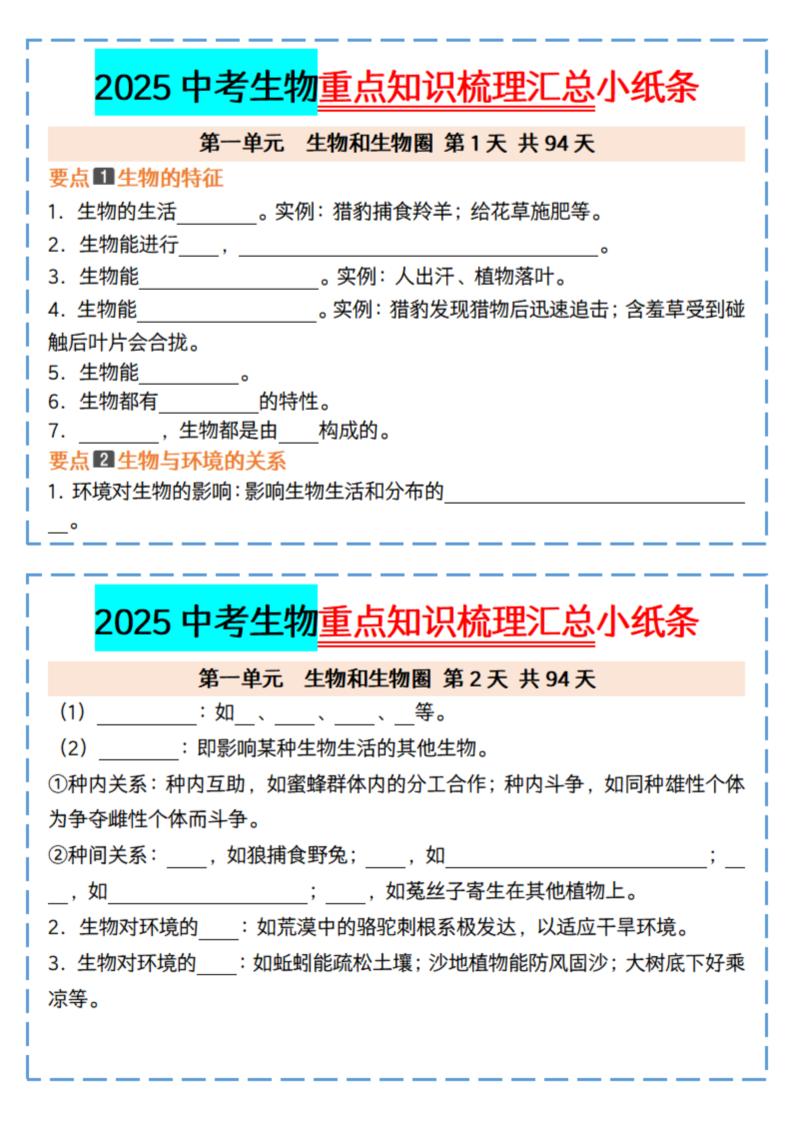 2025中考生物重点知识梳理汇总小纸条【答案】
