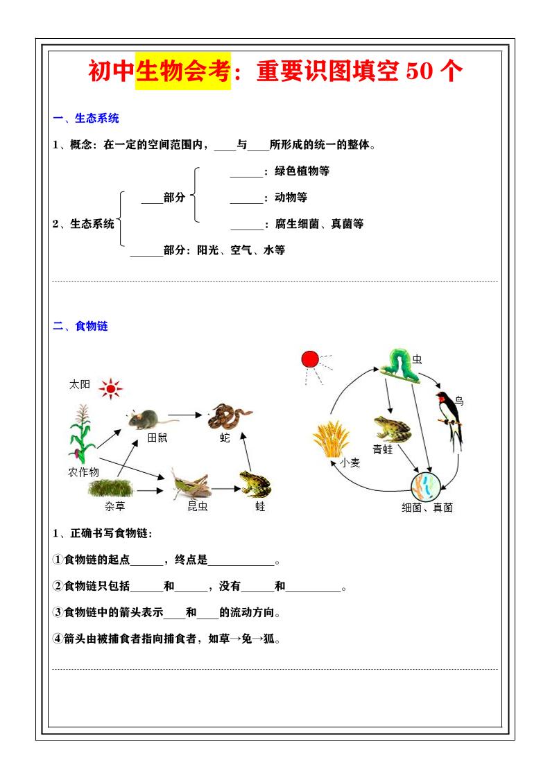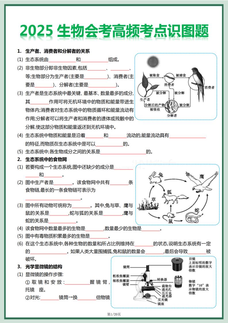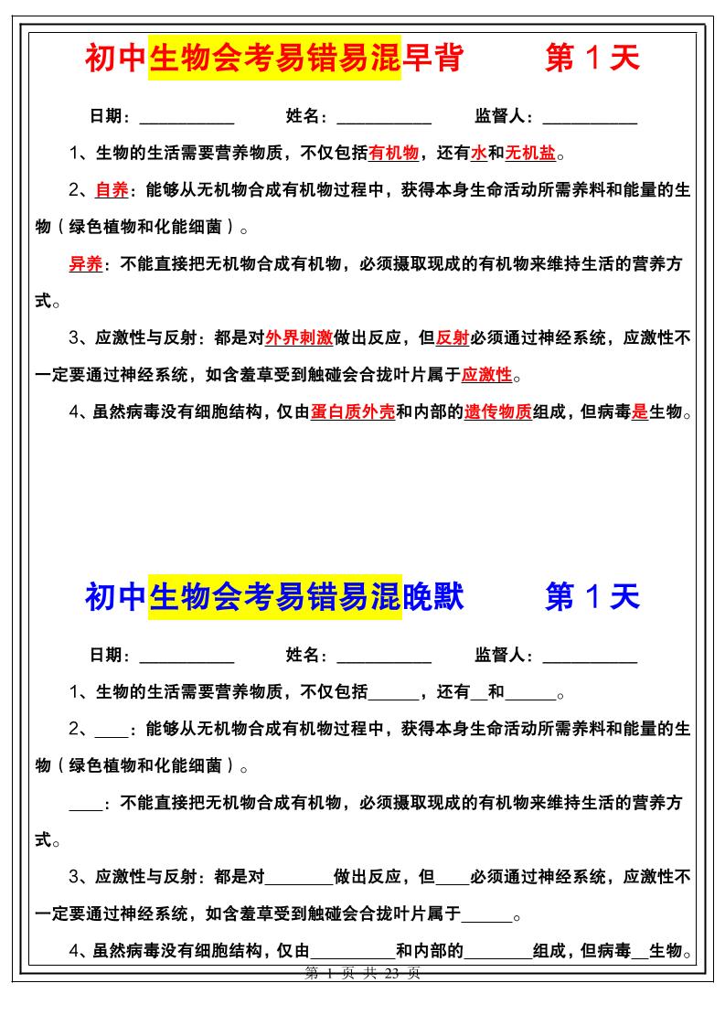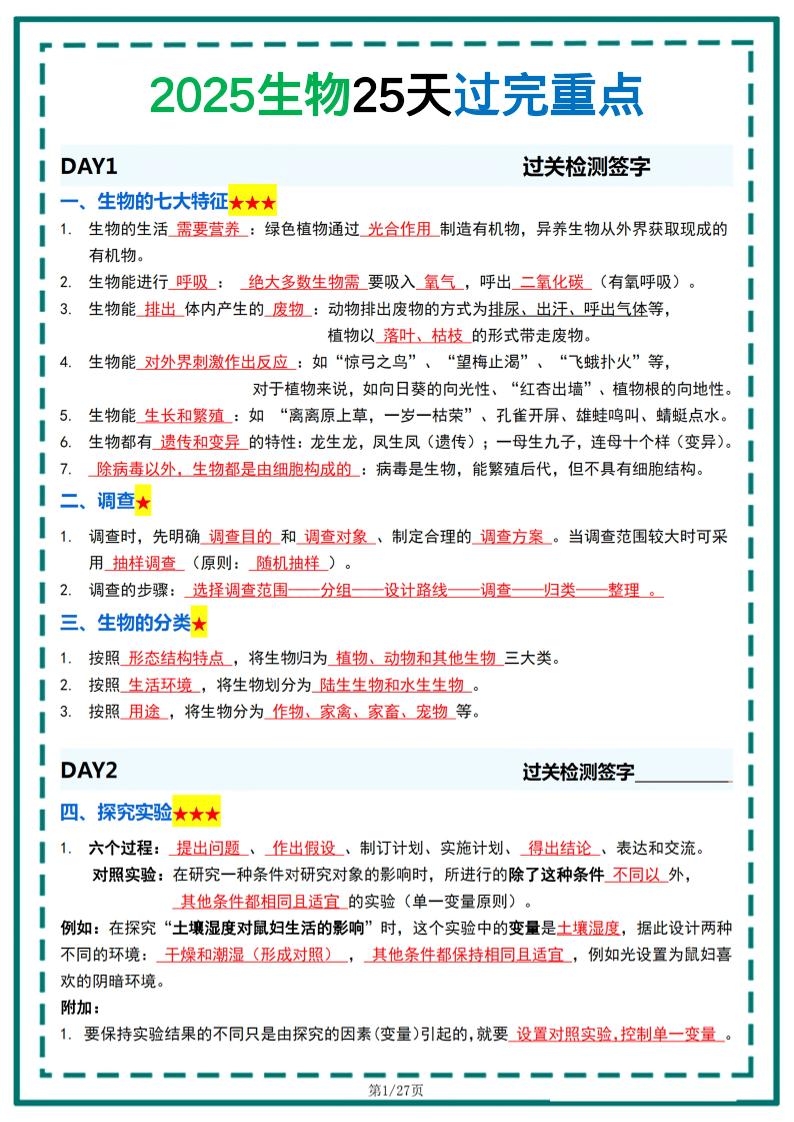 2025中考生物重点知识梳理汇总小纸条【答案】