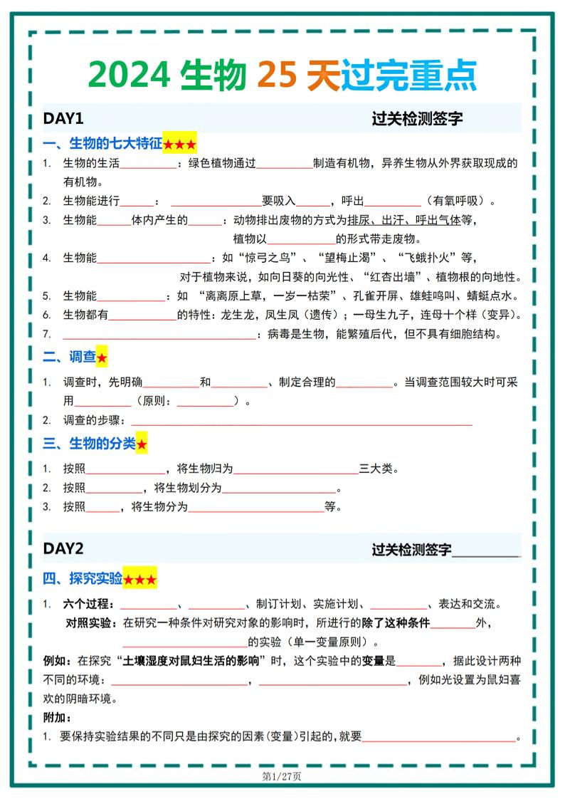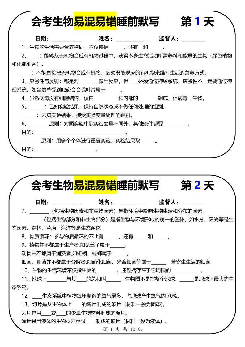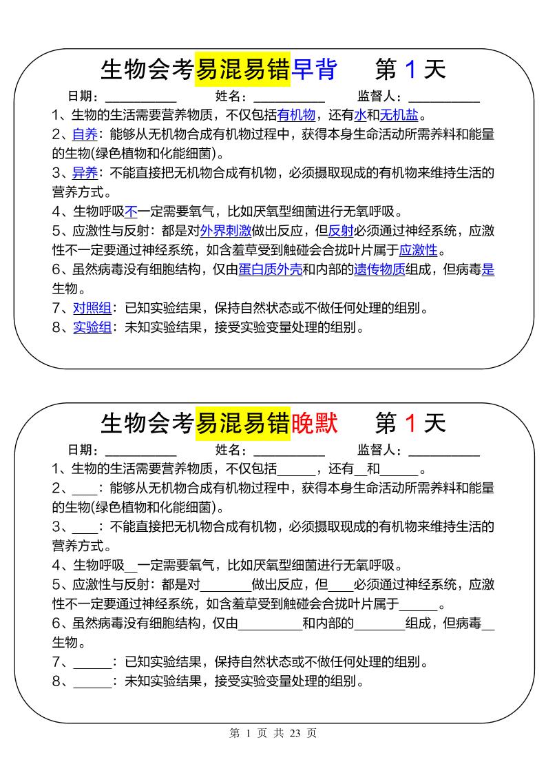 生物会考冲刺25 天计划过完重点(填空). (1)
