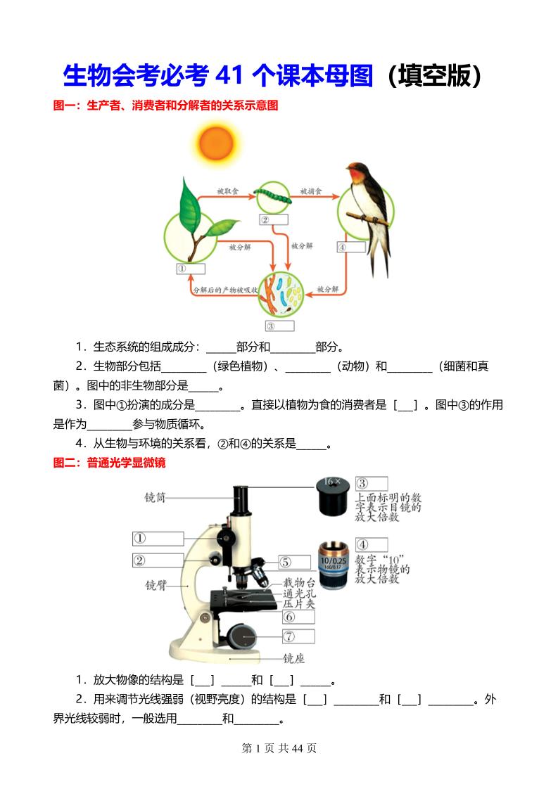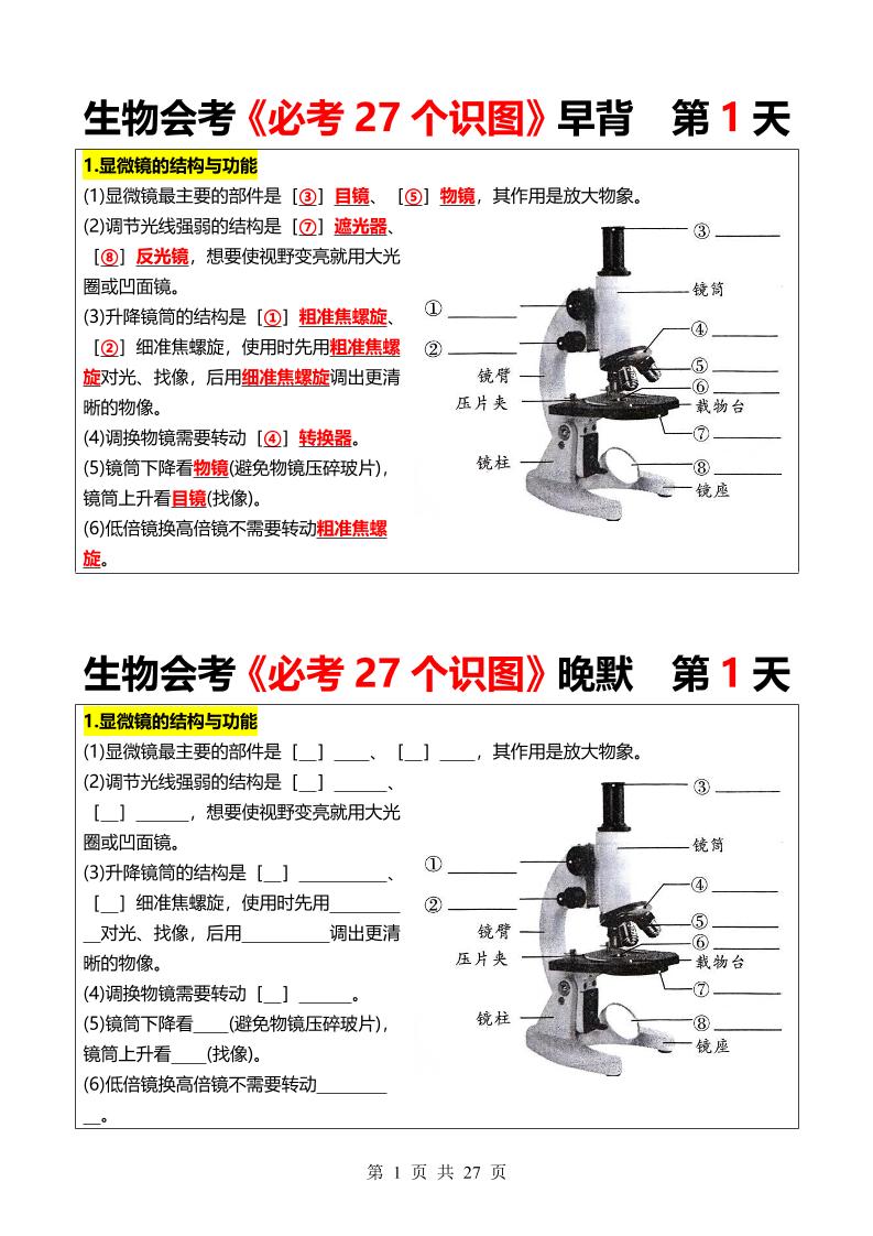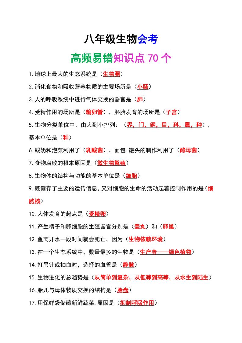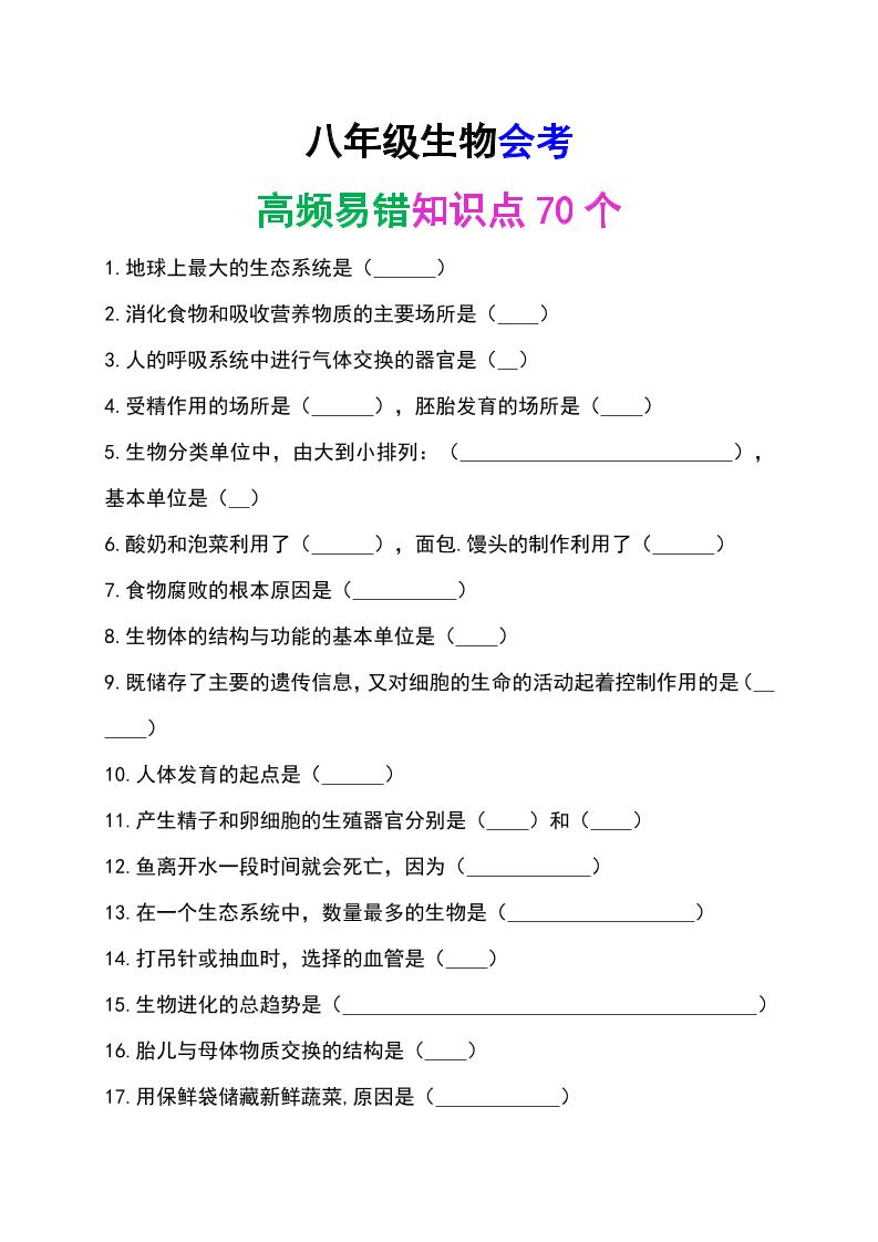 生物会考冲刺25 天计划过完重点(填空). (1)