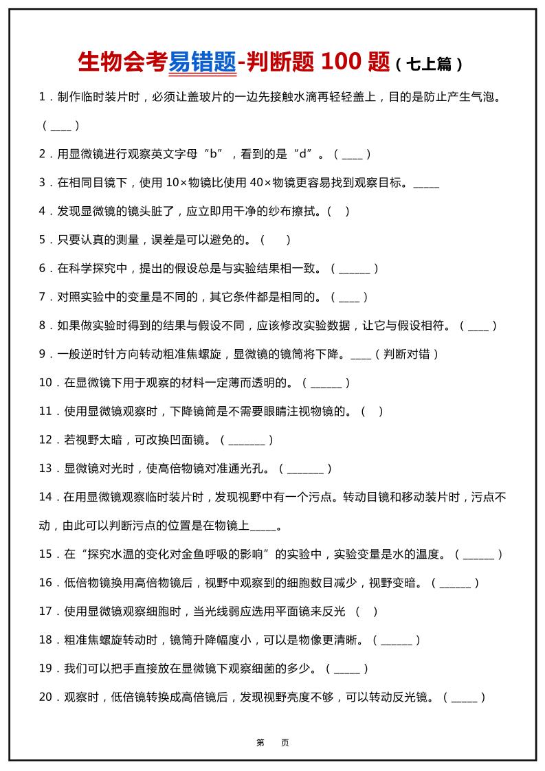 2025中考生物重点知识梳理汇总小纸条【空白】