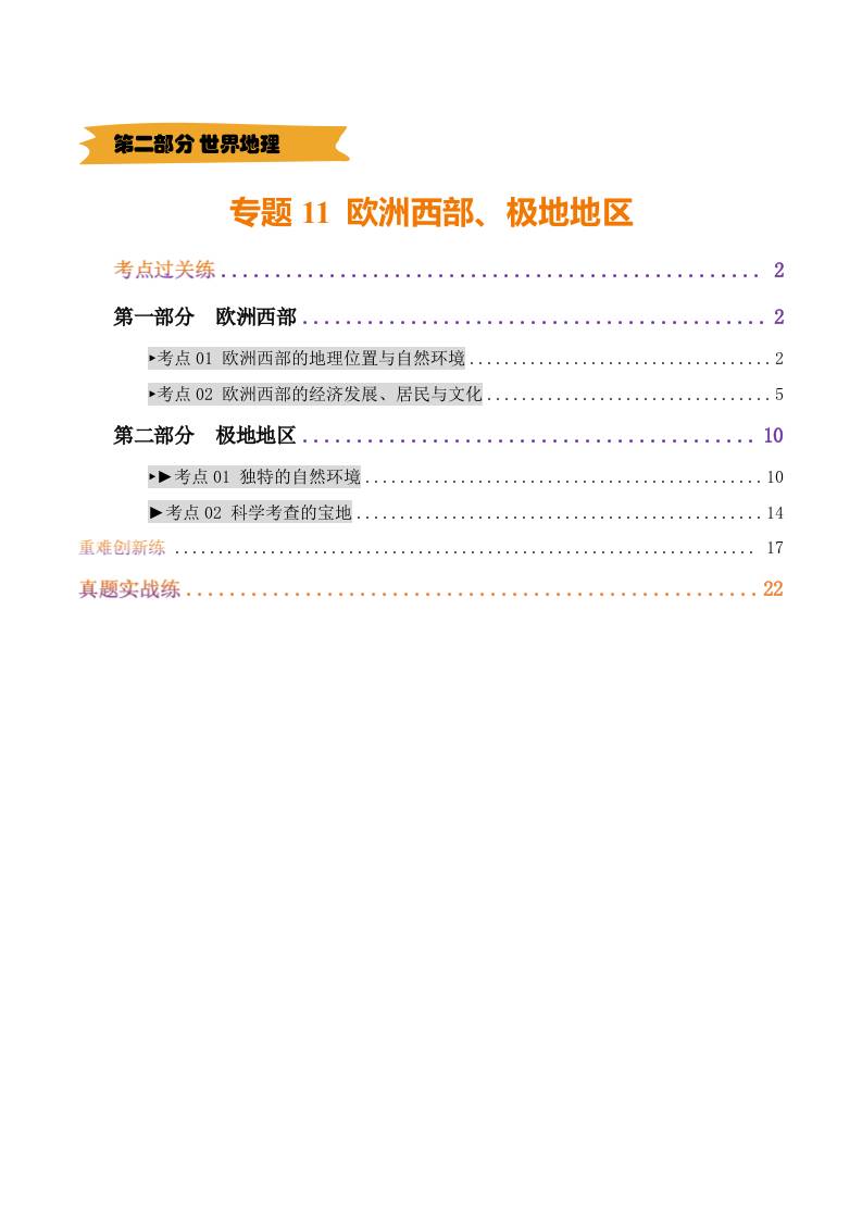 专题11 欧洲西部、极地地区(练习)(原卷版)