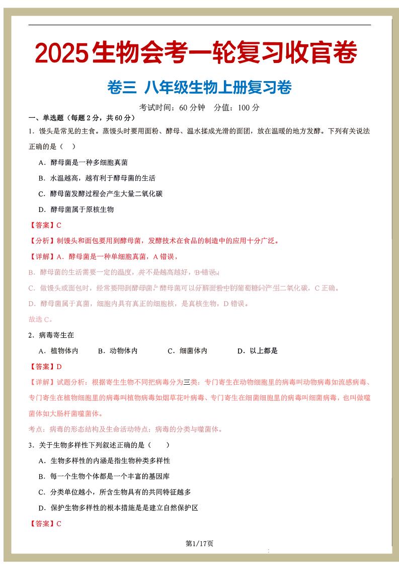 八年级上册--2025生物会考一轮复习收官卷(解析版)_