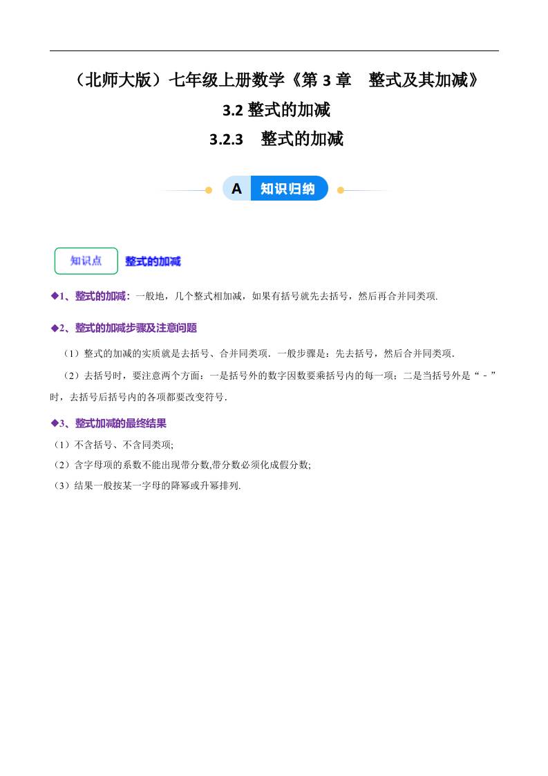 第三章第04讲 整式的加减(8大题型提分练)(原卷版)
