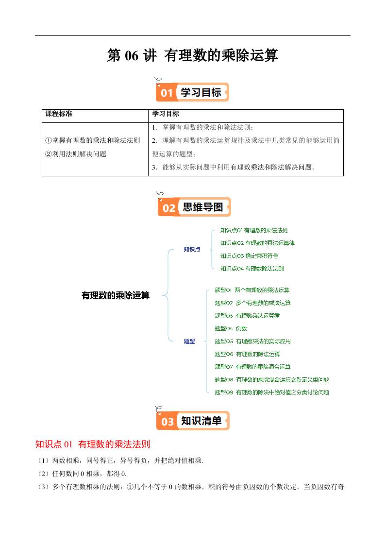 第二章第06讲 有理数的乘除运算(原卷版)