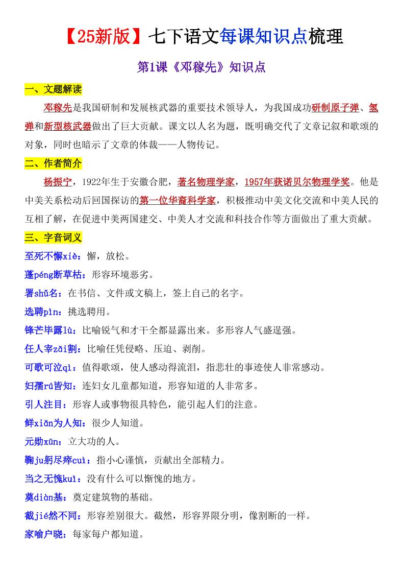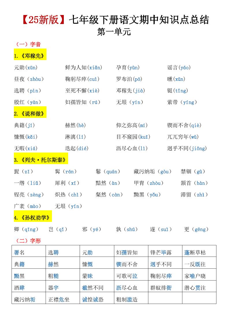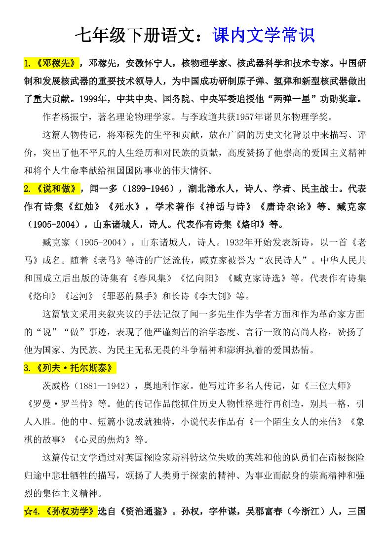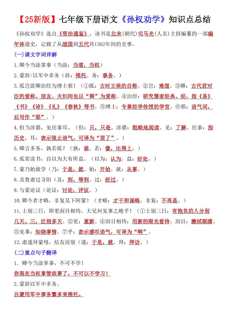 【25新版】七年级下册语文《孙权劝学》知识点总结