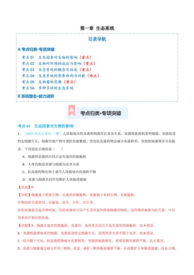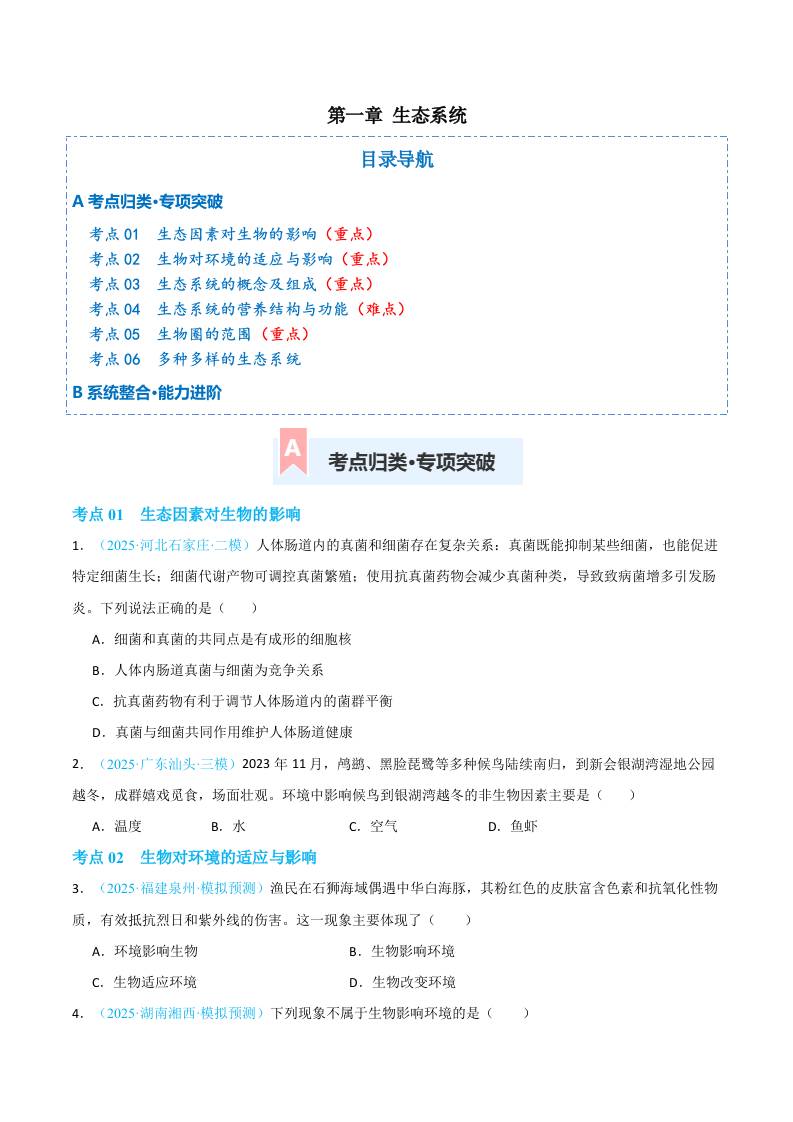第五单元第一章 生态系统(专项训练)(原卷版)