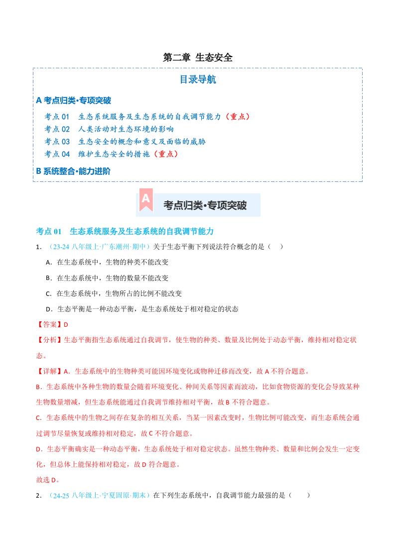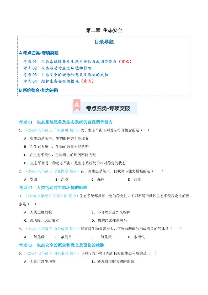 第五单元第二章 生态安全(专项训练)(原卷版)