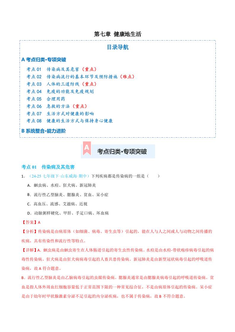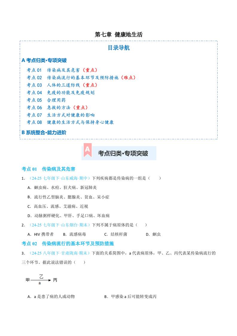 第四单元第七章 健康地生活(专项训练)(解析版)