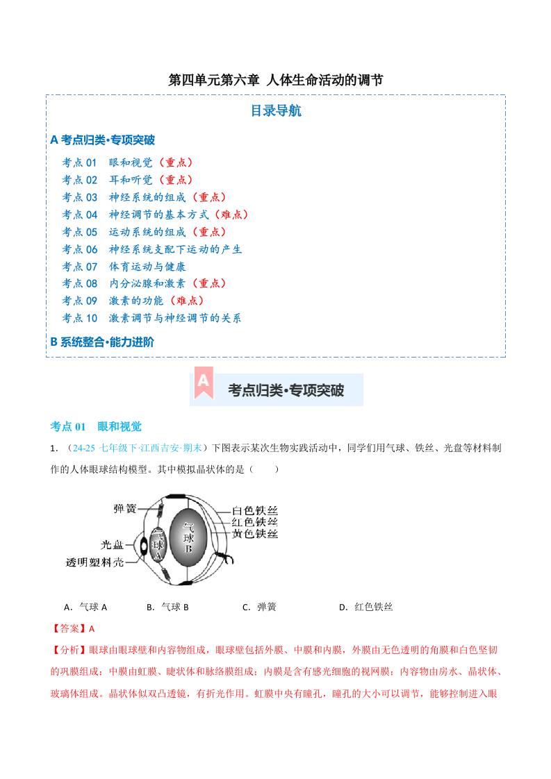 第四单元第六章 人体生命活动的调节(专项训练)(解析版)