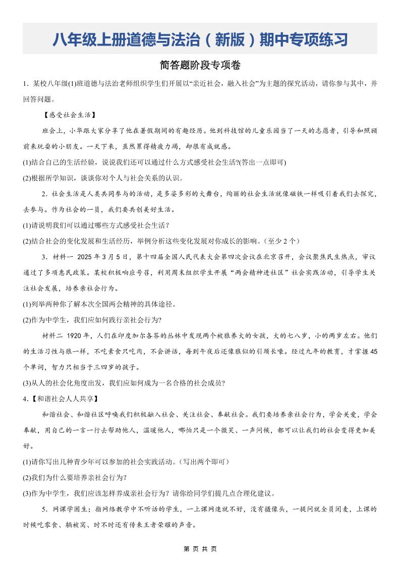 八上道法期中简答题阶段专项卷