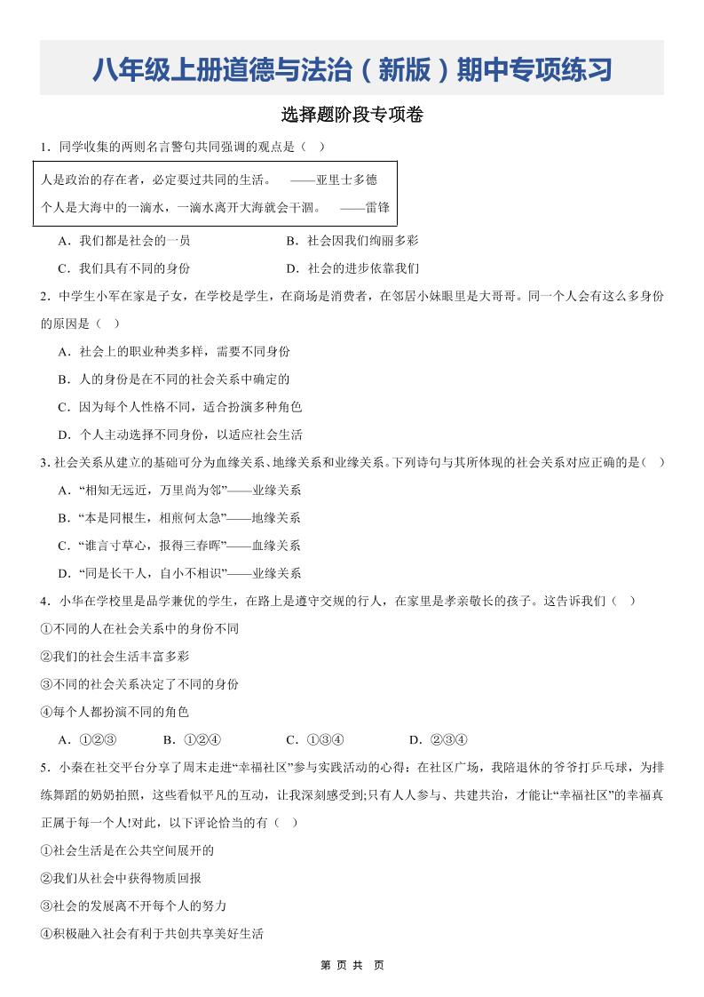 八上道法期中选择题阶段专项卷