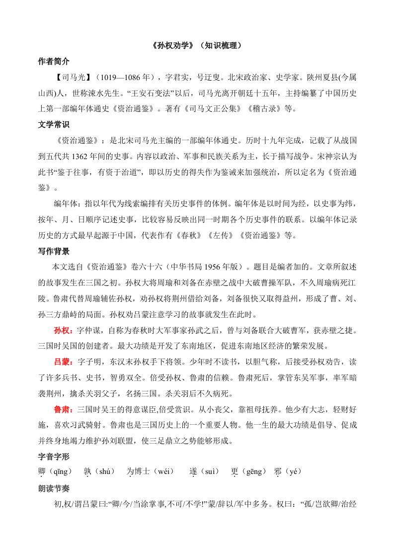 01《孙权劝学》知识梳理