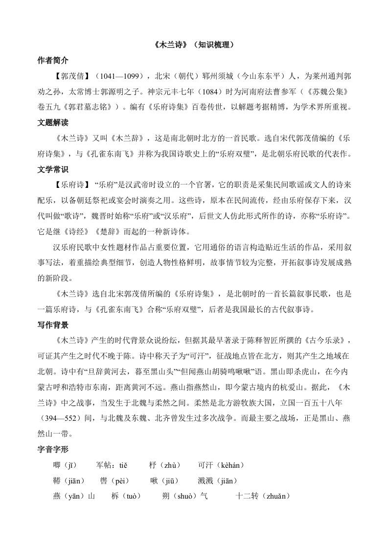 02《木兰诗》知识梳理