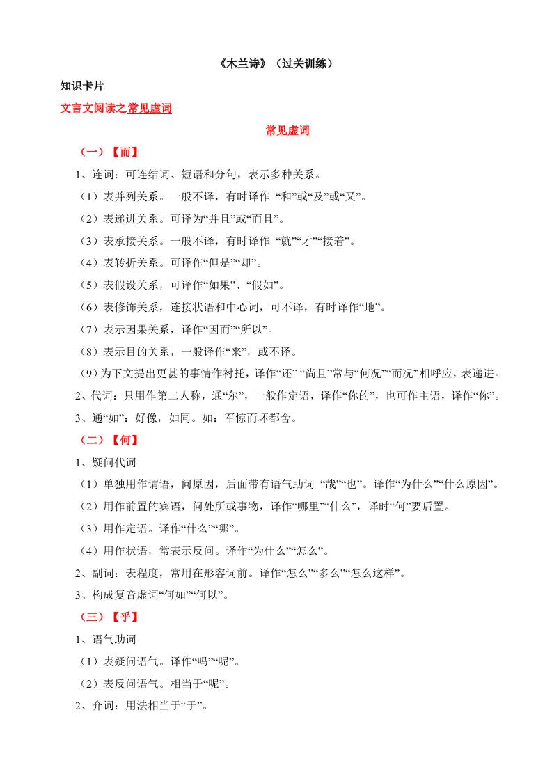 02《木兰诗》过关训练