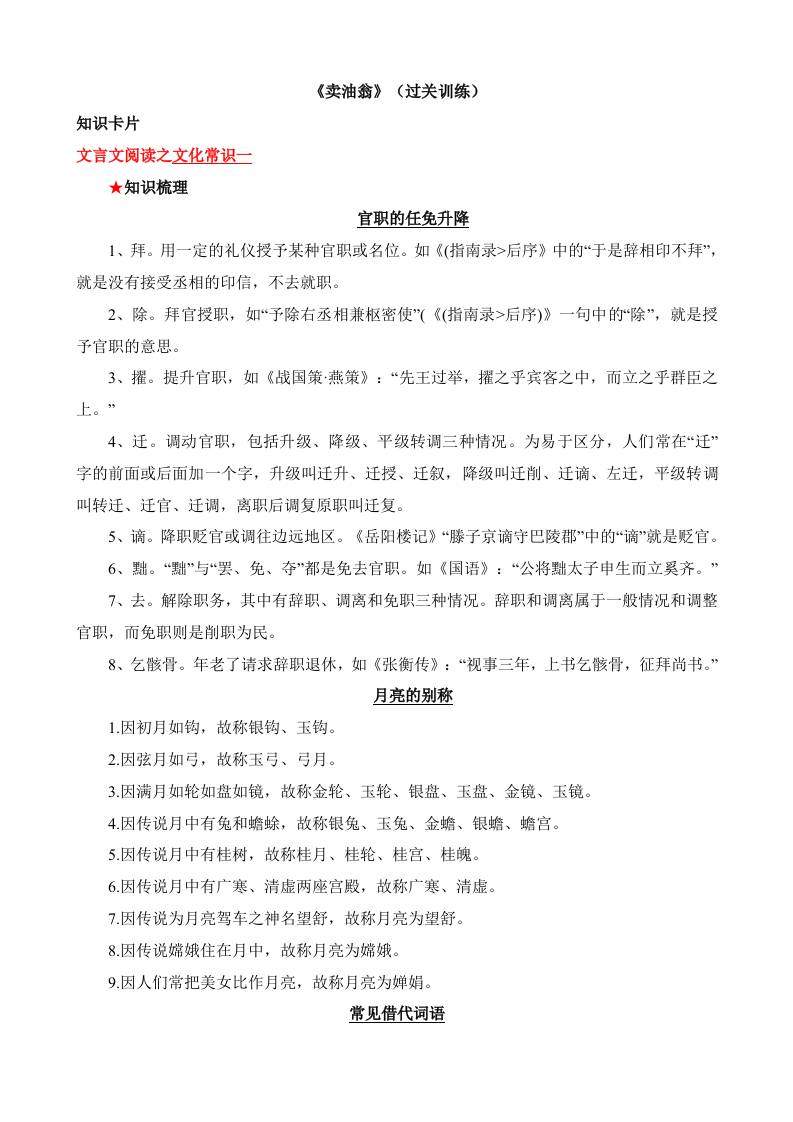 专题02《卖油翁》知识汇总(部编版)