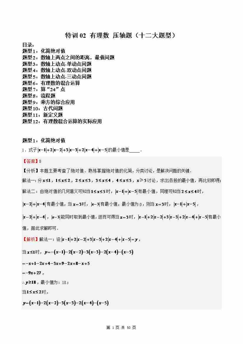 沪教版沪教版特训02:有理数压轴题(十二大题型)(解析版)