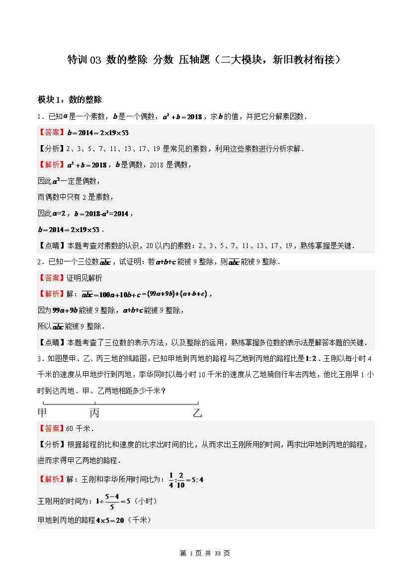 沪教版沪教版特训03:数的整除分数压轴题(二大模块,新旧教材衔接)(解析版)
