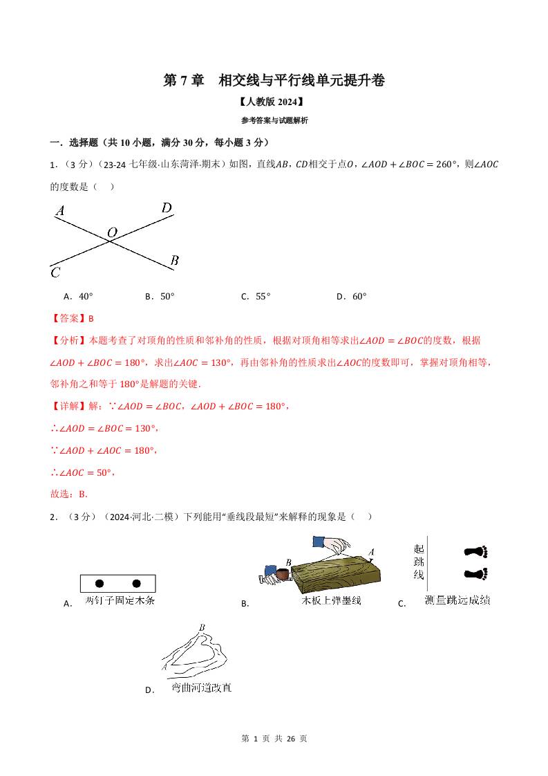 专题7.7 相交线与平行线单元提升卷(人教版2024)(解析版)