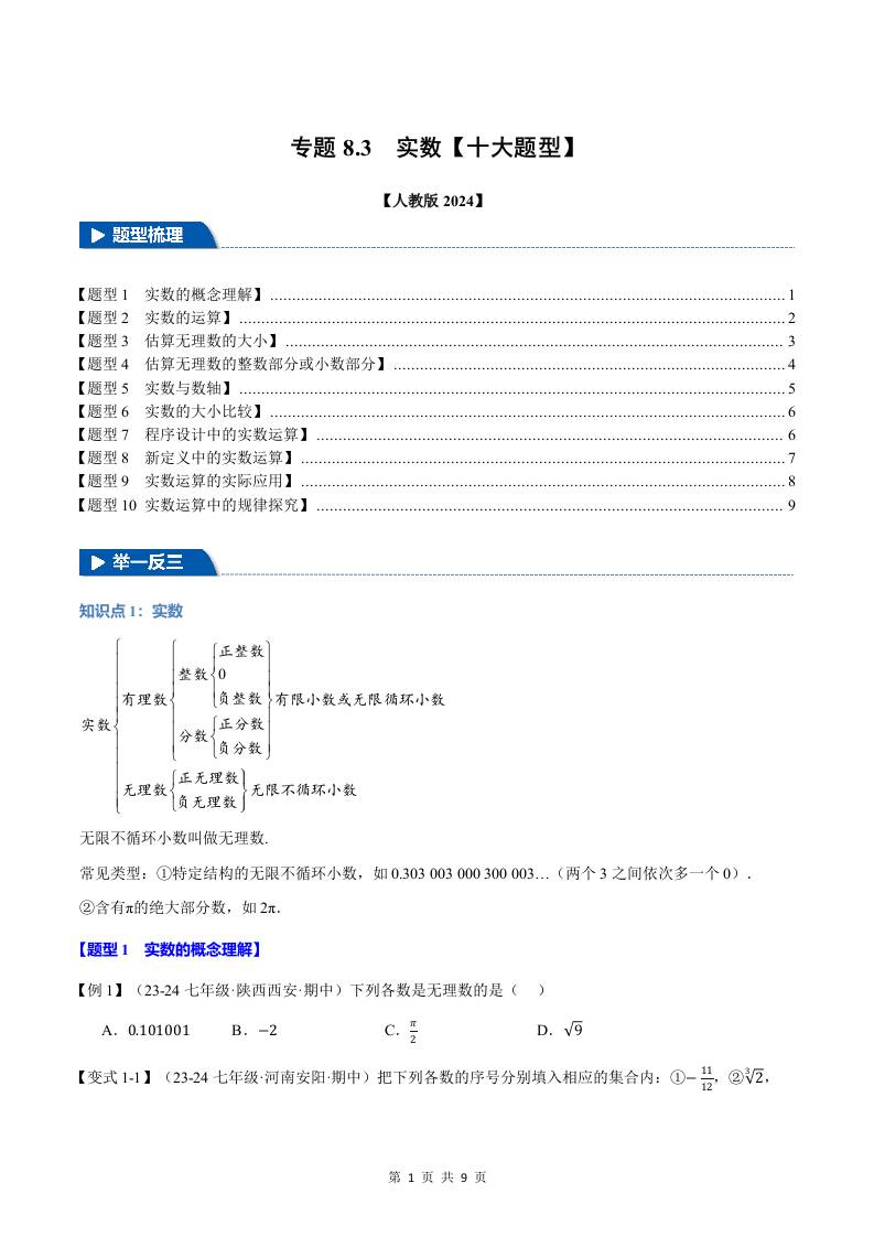 专题8.3 实数【十大题型】(举一反三)(人教版2024)(原卷版)