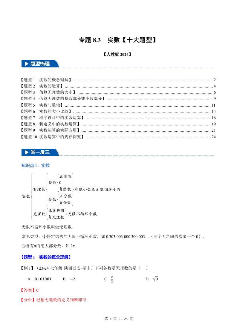 专题8.3 实数【十大题型】(举一反三)(人教版2024)(解析版)