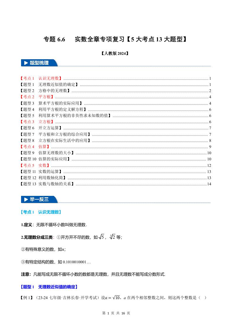 专题8.6 实数全章专项复习【5大考点13大题型】(举一反三)(人教版2024)(原卷版)