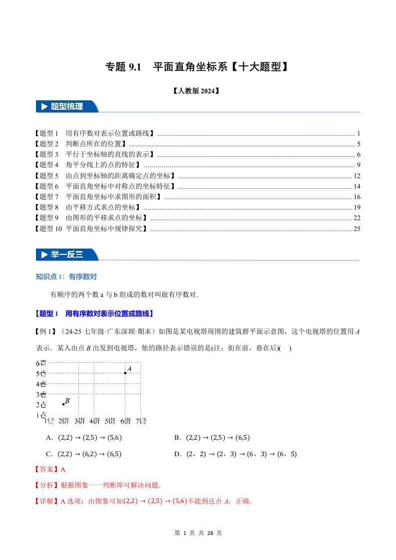 专题9.1 平面直角坐标系【十大题型】(举一反三)(人教版2024)(解析版)