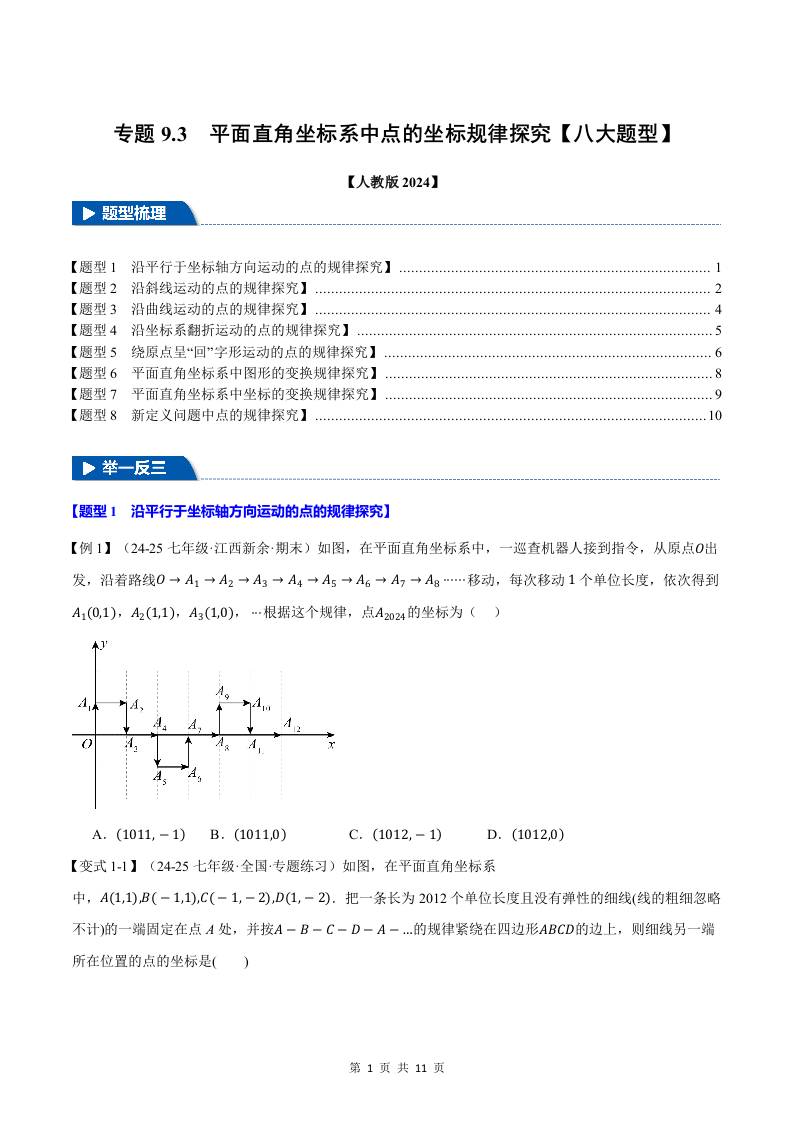 专题9.3 平面直角坐标系中点的坐标规律探究【八大题型】(举一反三)(人教版2024)(原卷版)