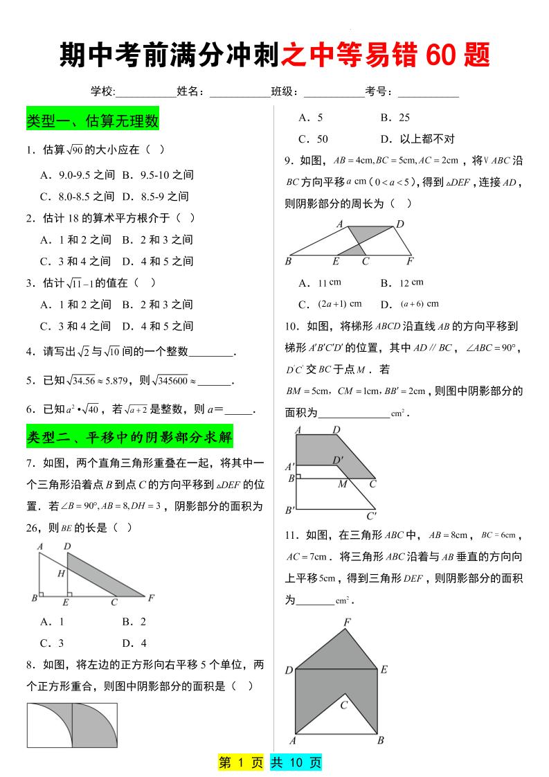 期中考前满分冲刺之中等易错题(原卷版)【人教版】