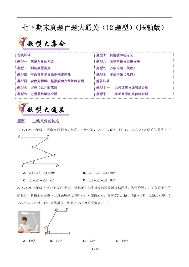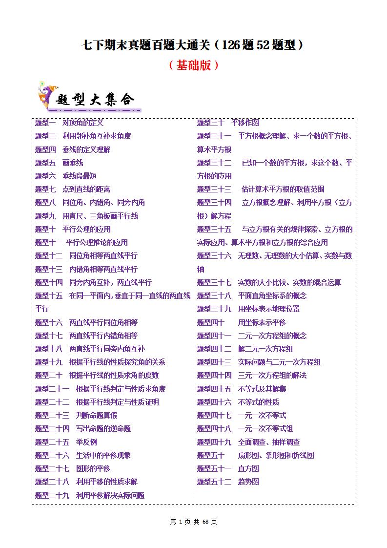 七下期末真题百题大通关(126题52题型)(基础版)原卷版