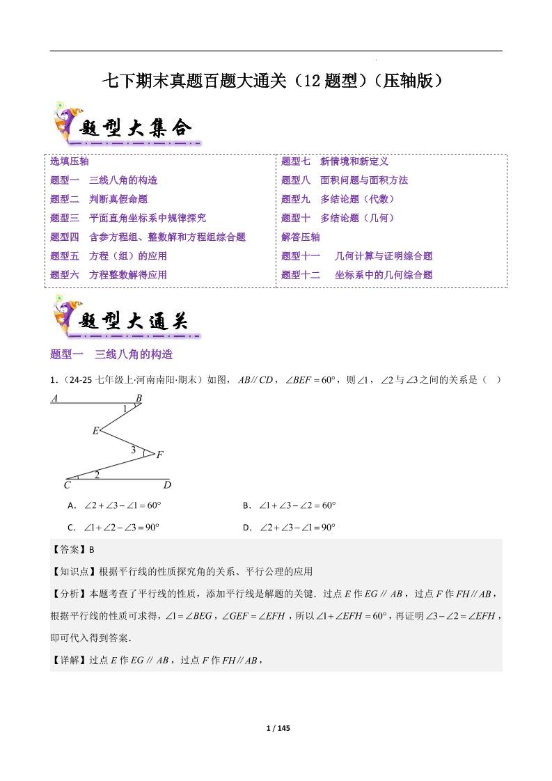 七下数学人教版期末真题百题大通关(12题型)(压轴版)解析版