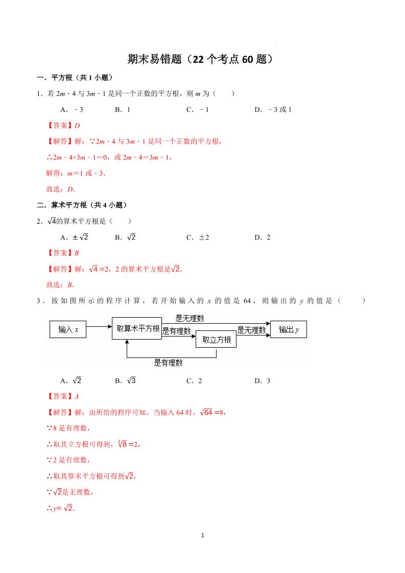 七年级下册数学人教版期末易错题(22个考点60题)(解析版)